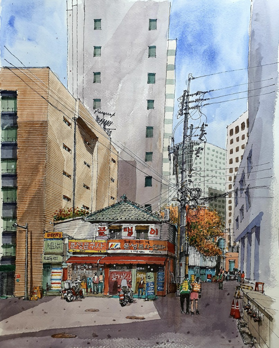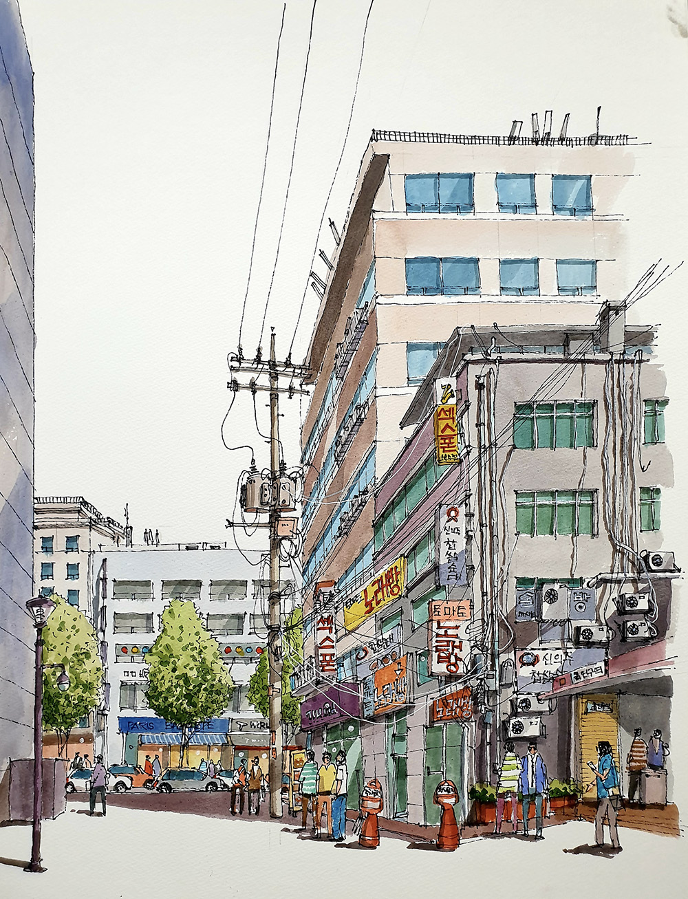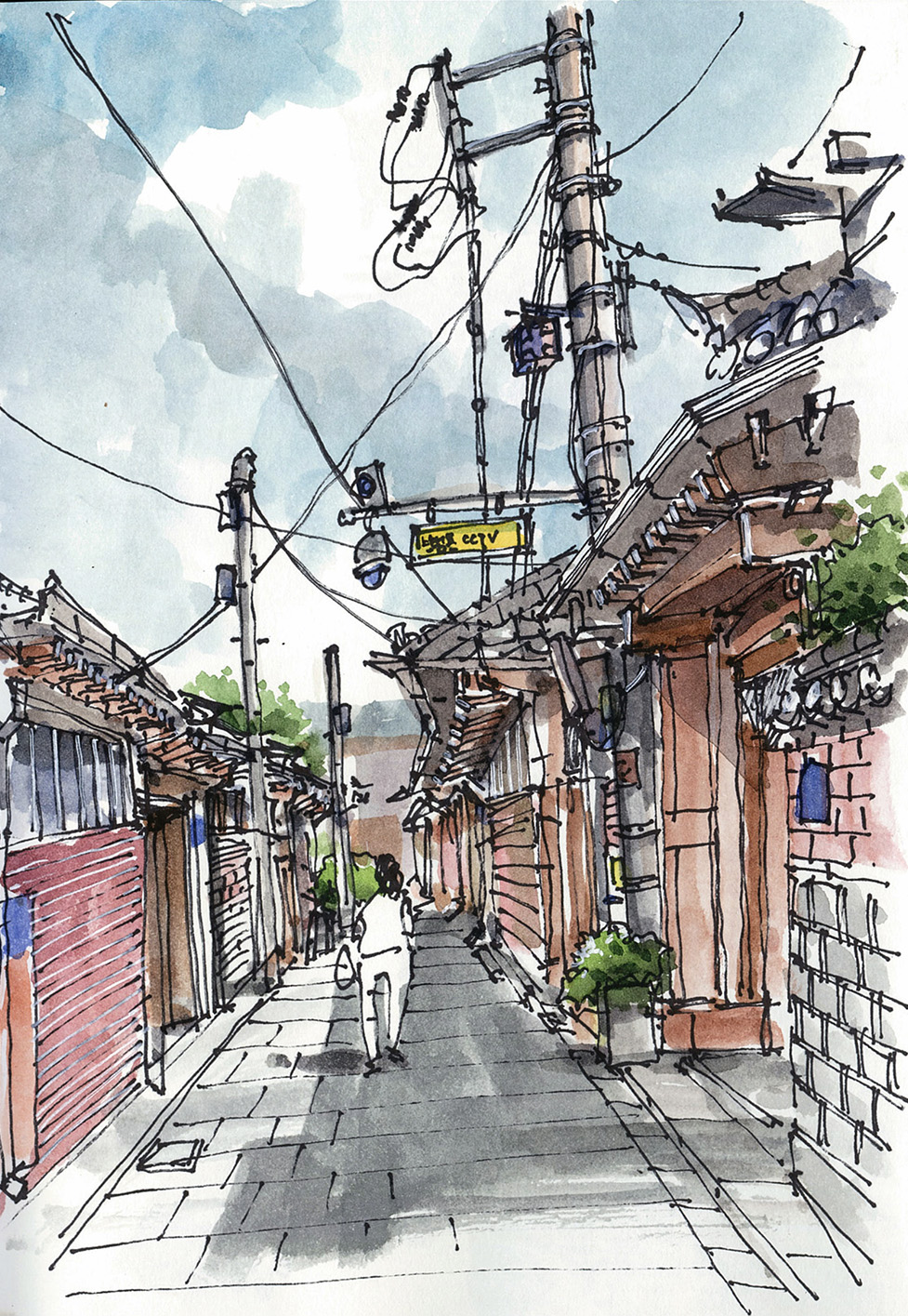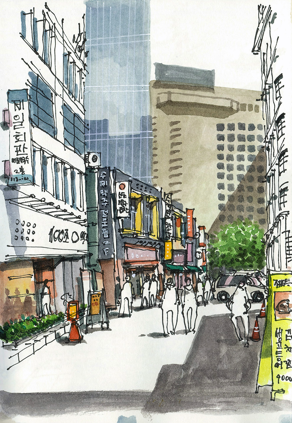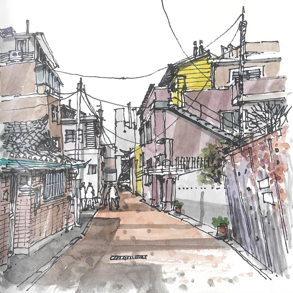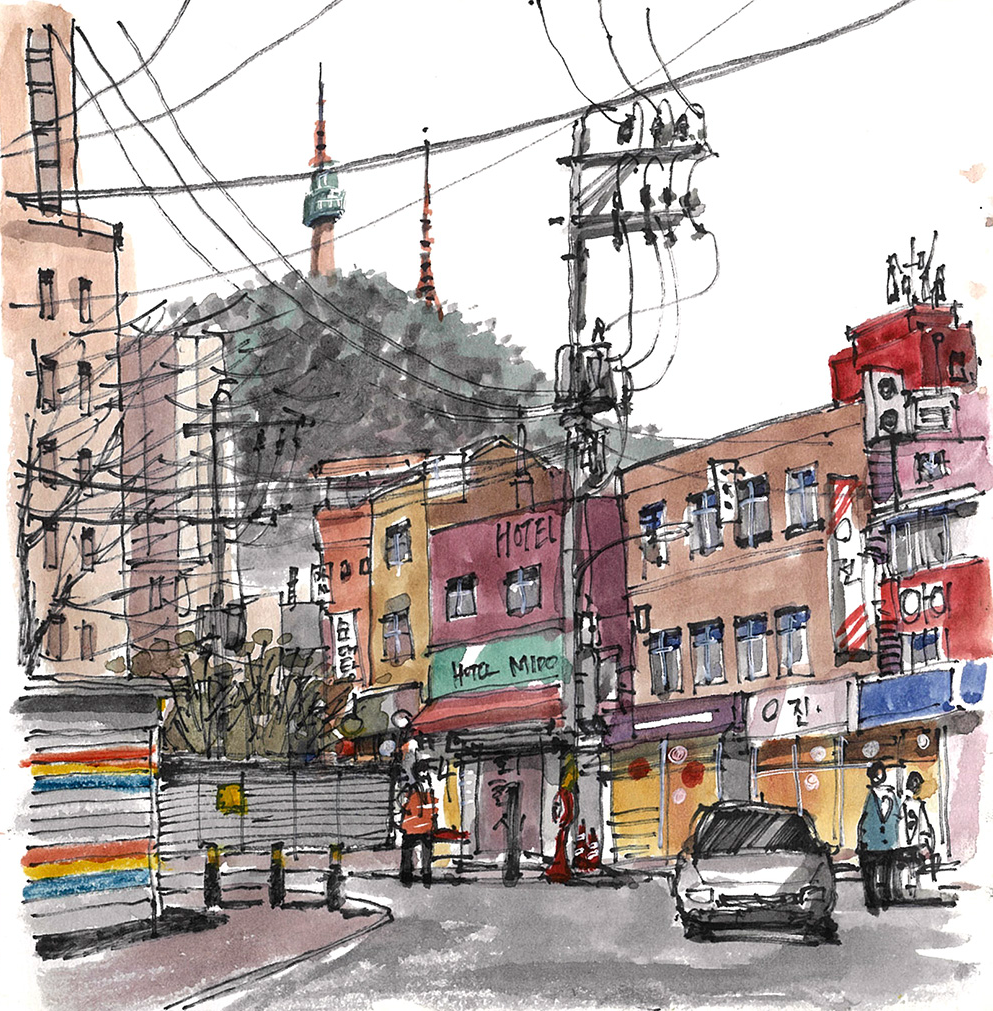 회사가 세종대로에 위치해 있으니 외국 관광객을 쉽게 만날 수 있다. 서울을 처음 찾은 외국인들에게 서울은 어떤 모습일까? 그들에게 서울을 소개한다면 어떻게 설명하는 것이 좋을까? 무더운 여름을 보내는 중에 문득 이런 생각이 들어서 그동안 작업했던 서울의 스케치들을 모아보았다. 그리고 이 더위만 지나가면 그림 안에 있는 그 동네를 어슬렁거리며 한 바퀴 산책이나 해볼까 하는 요량으로 서울의 구석구석을 다시 들여다보기 시작했다.