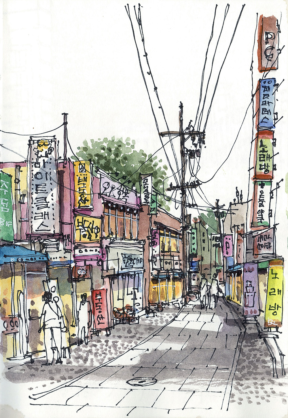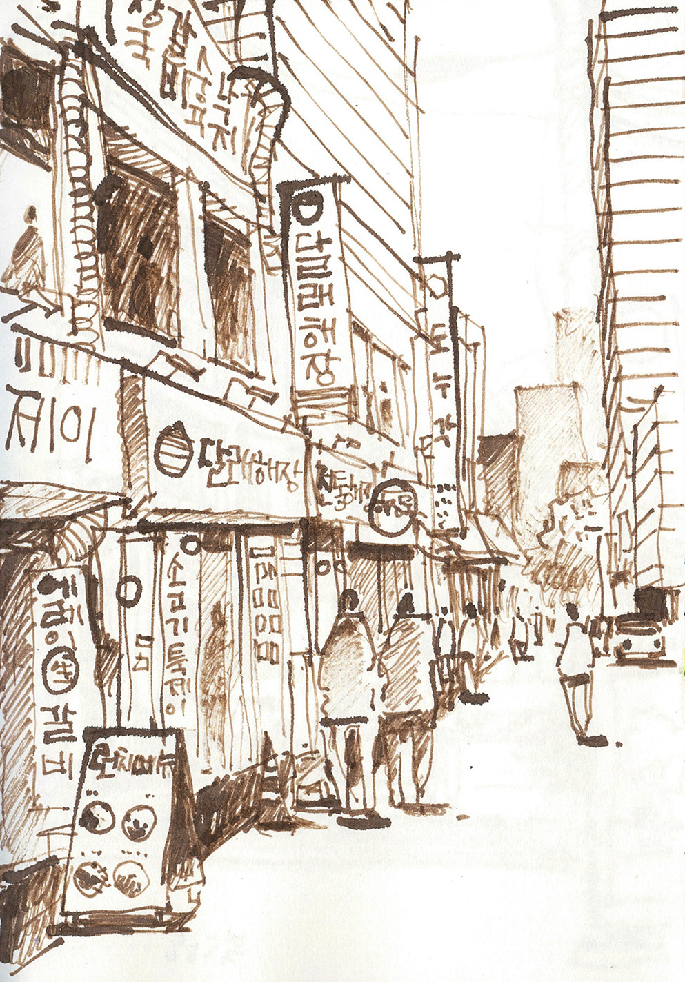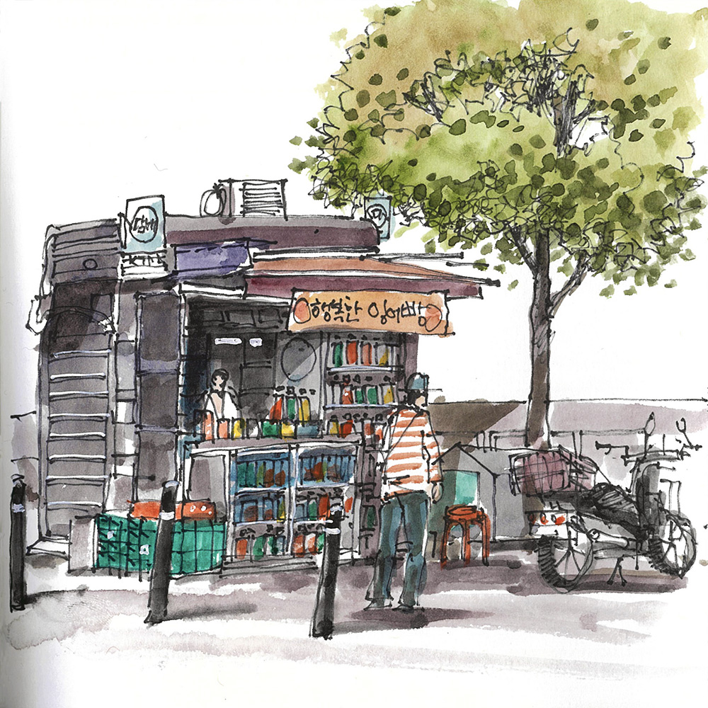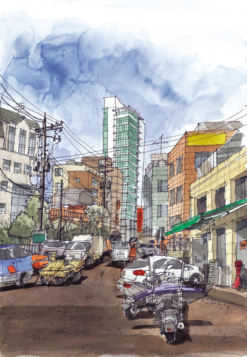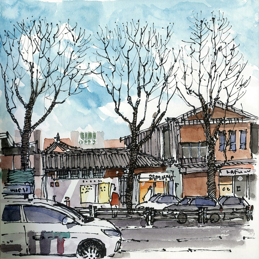 회사가 세종대로에 위치해 있으니 외국 관광객을 쉽게 만날 수 있다. 서울을 처음 찾은 외국인들에게 서울은 어떤 모습일까? 그들에게 서울을 소개한다면 어떻게 설명하는 것이 좋을까? 무더운 여름을 보내는 중에 문득 이런 생각이 들어서 그동안 작업했던 서울의 스케치들을 모아보았다. 그리고 이 더위만 지나가면 그림 안에 있는 그 동네를 어슬렁거리며 한 바퀴 산책이나 해볼까 하는 요량으로 서울의 구석구석을 다시 들여다보기 시작했다.