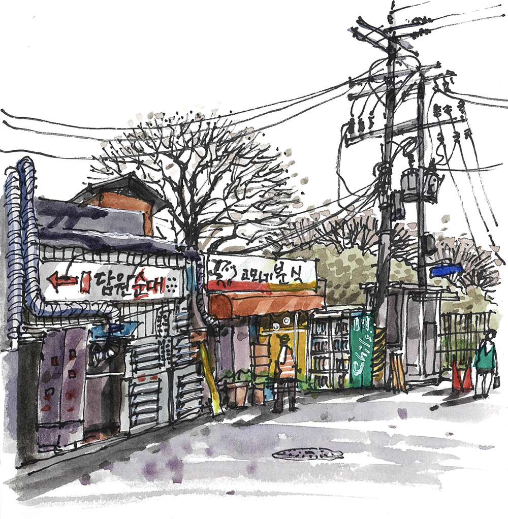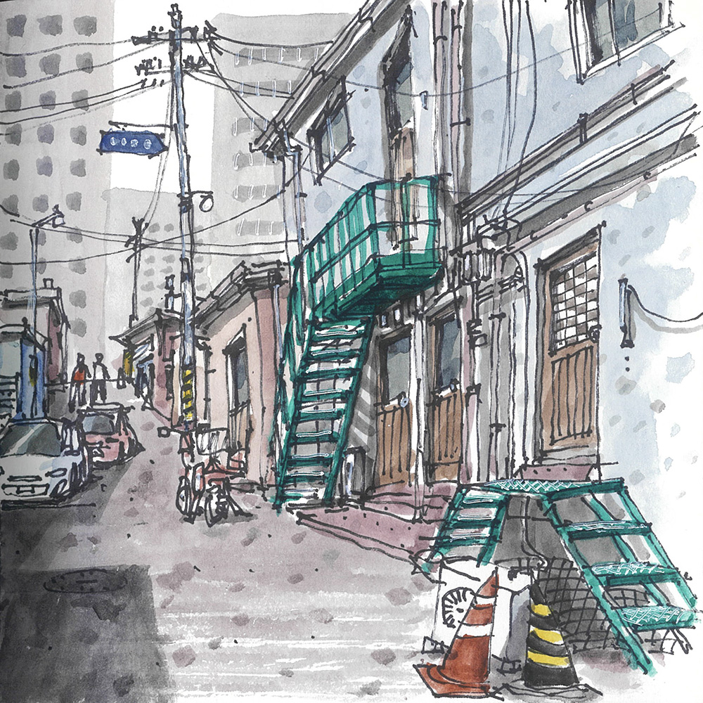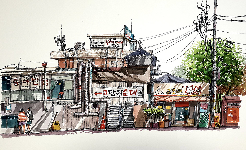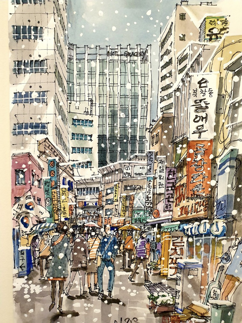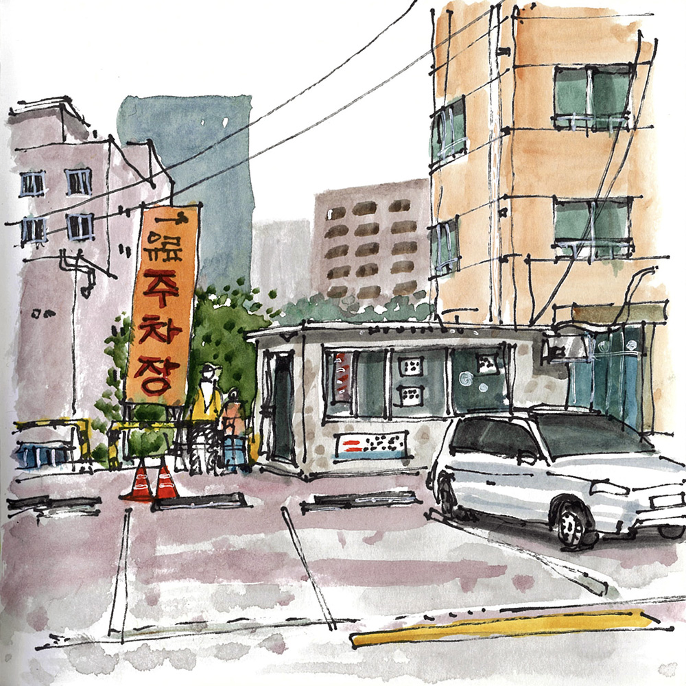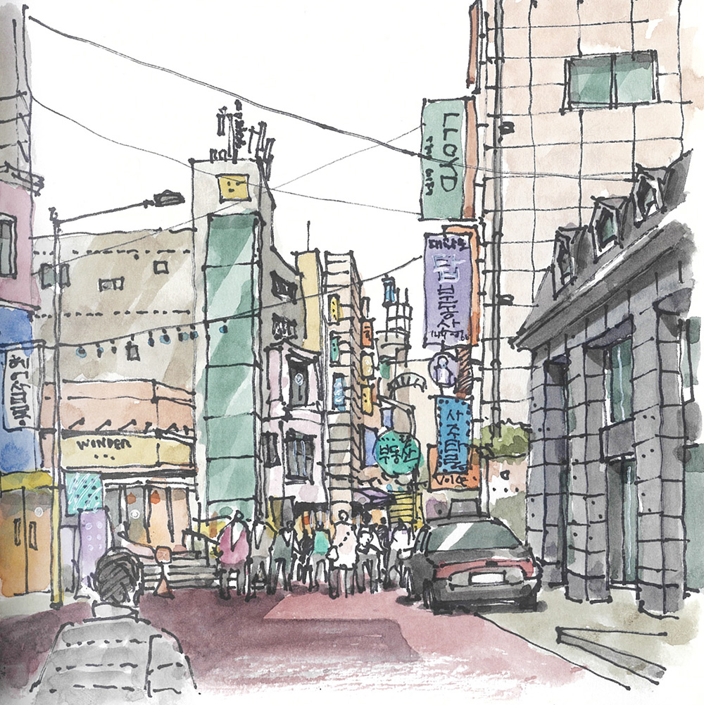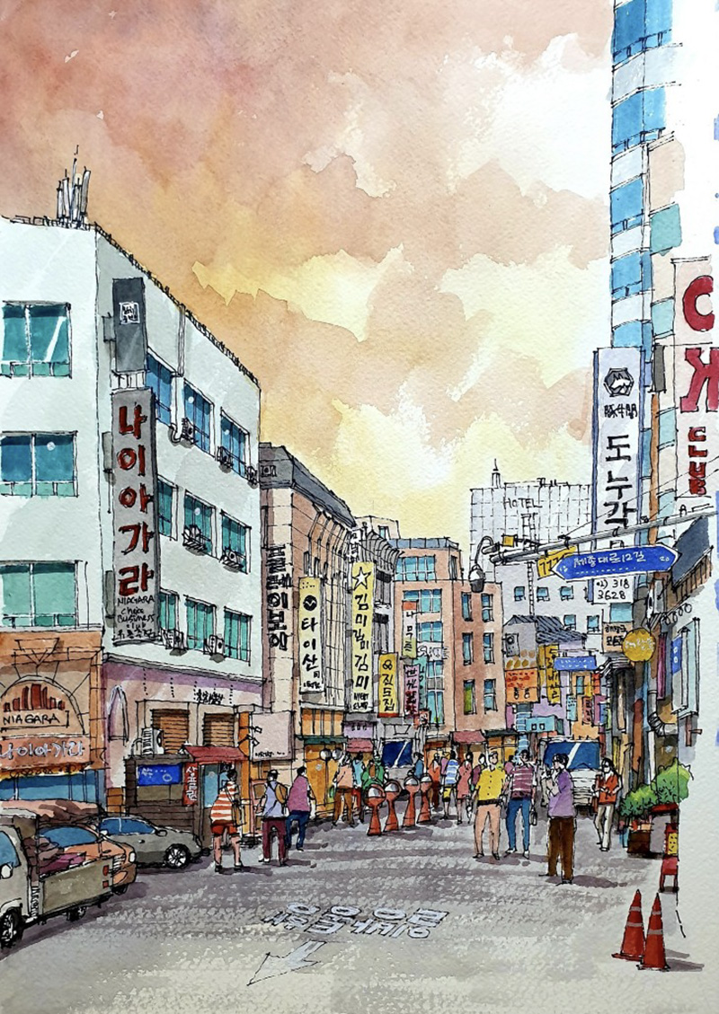 회사가 세종대로에 위치해 있으니 외국 관광객을 쉽게 만날 수 있다. 서울을 처음 찾은 외국인들에게 서울은 어떤 모습일까? 그들에게 서울을 소개한다면 어떻게 설명하는 것이 좋을까? 무더운 여름을 보내는 중에 문득 이런 생각이 들어서 그동안 작업했던 서울의 스케치들을 모아보았다. 그리고 이 더위만 지나가면 그림 안에 있는 그 동네를 어슬렁거리며 한 바퀴 산책이나 해볼까 하는 요량으로 서울의 구석구석을 다시 들여다보기 시작했다.