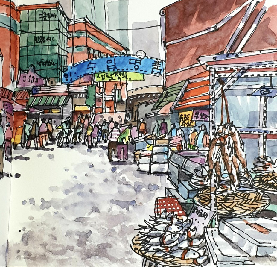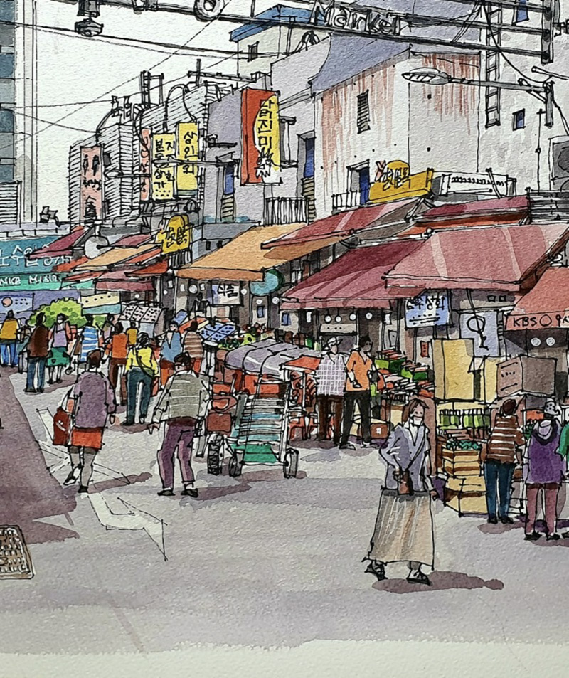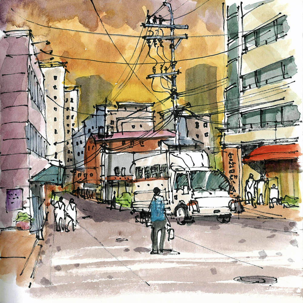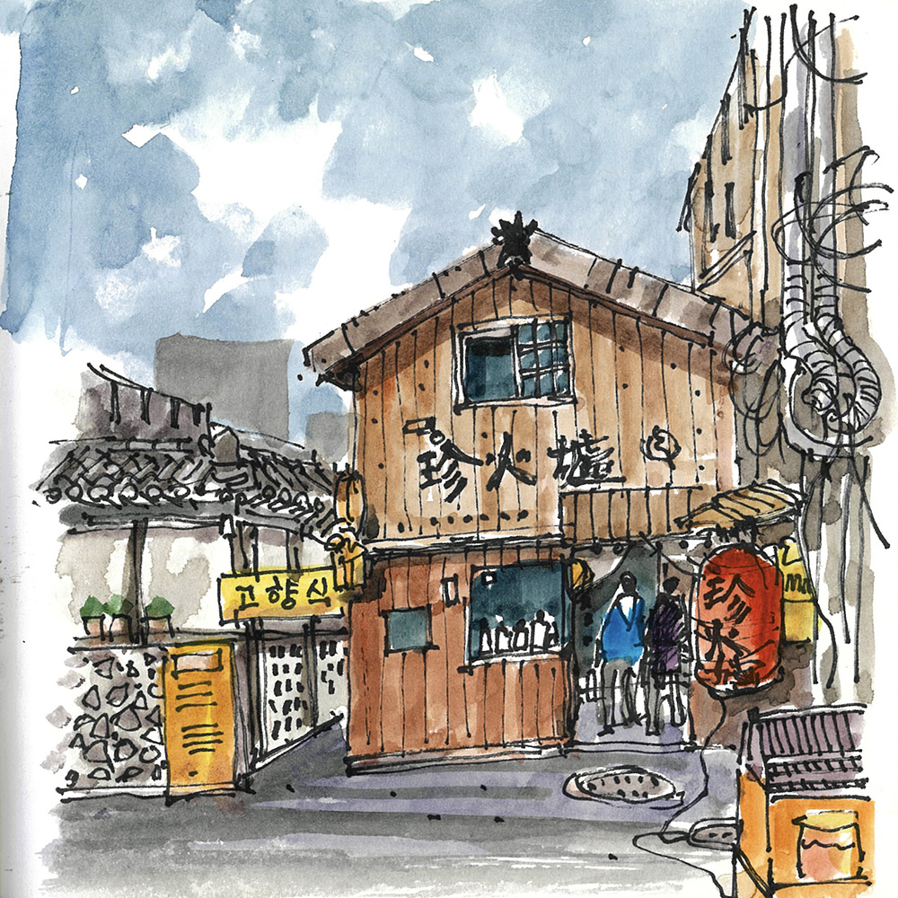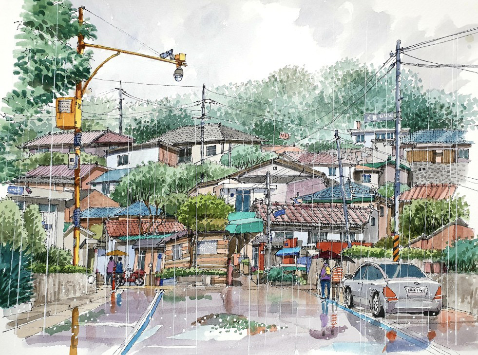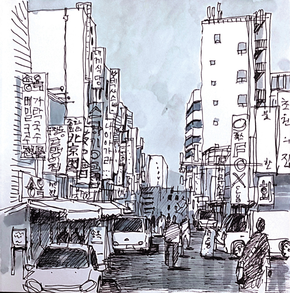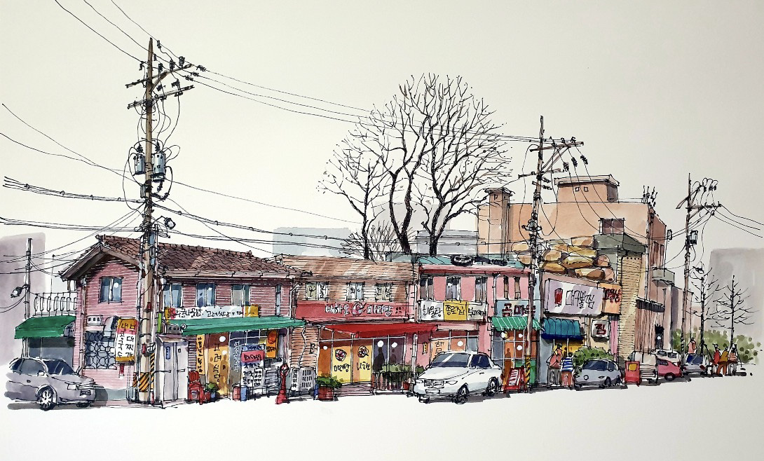 회사가 세종대로에 위치해 있으니 외국 관광객을 쉽게 만날 수 있다. 서울을 처음 찾은 외국인들에게 서울은 어떤 모습일까? 그들에게 서울을 소개한다면 어떻게 설명하는 것이 좋을까? 무더운 여름을 보내는 중에 문득 이런 생각이 들어서 그동안 작업했던 서울의 스케치들을 모아보았다. 그리고 이 더위만 지나가면 그림 안에 있는 그 동네를 어슬렁거리며 한 바퀴 산책이나 해볼까 하는 요량으로 서울의 구석구석을 다시 들여다보기 시작했다.