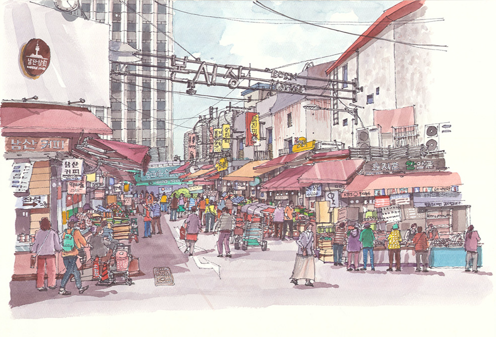 회현동 중구 북창동에서 남쪽으로 길을 하나 건너면 남창동이 있다. 여기에 위치한 남대문시장은 마치 어릴 적 받았던 종합선물세트처럼 생필품은 물론 다양한 먹거리도 풍요롭다. 수입 물품 전문점인 도깨비시장, 꽃 도매상, 다양한 의류점. 악세사리, 안경점 뿐만 아니라 노상에서 만두나 야채 호떡을 파는 가게 앞에는 손님들이 줄지어 서 있다. 쇼핑 시설이 현대화되어 가면서 코스트코, 스타필드, 이마트, 하나로마트, 혹은 동네 24시간 편의점 등 다양한 상업 공간들이 생겨나지만 전통 장터의 분위기를 간직한 재래시장은 다른 맛이 있다. 아침 일찍부터 서둘러 문을 연 상점들은 관광객은 물론, 구경나온 손님들을 맞이하면서 시장 골목은 이내 활력이 넘치고 북적이기 시작한다. 세련되지 않고 날 것같은 시장의 본질이 느껴지고 거칠고 왁자지껄한 분위기로 생동감이 넘쳐나는 이 곳은 정겨운 유년 시절의 추억을 떠올리게 한다. 서로 돕고 사는 이웃의 정이 남아 친근감이 모락모락 솟아나는 곳. 어머니의 손맛으로 만들어 낸 먹거리들과 넉넉한 인심이 묻어나는 곳으로 하루하루 소박한 상거래지만 정직한 삶의 체험 현장이다.