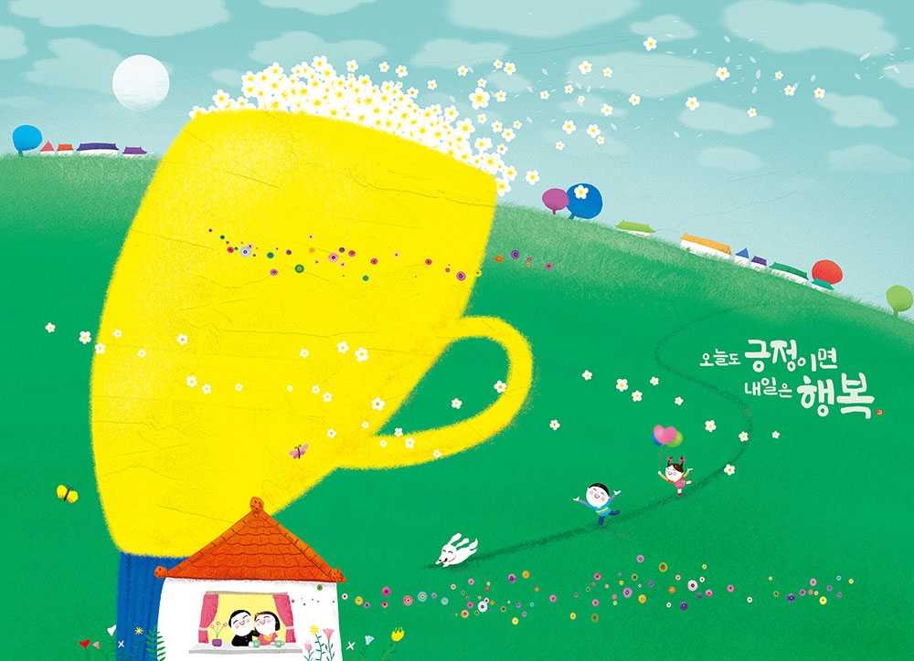 ‘긍정’과 ‘행복’을 시각언어로 풀어낸 캐릭터 작업으로 ‘행복을 그리는 긍정작가’로 알려져 있다.
