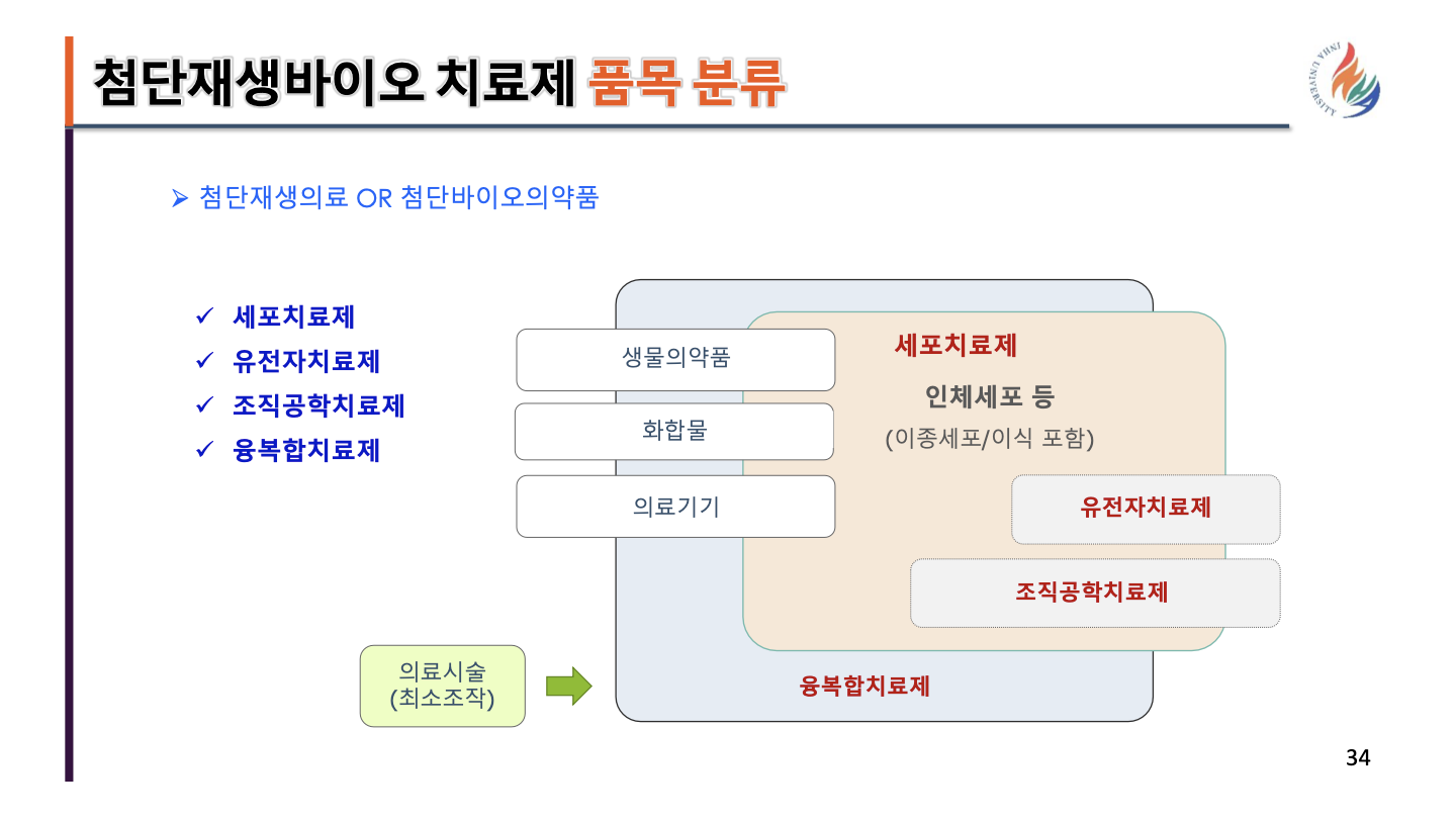 첫 번째 발표는 인하대학교 의과대학 최병현 교수가 ‘첨단재생의료 분야의 병원과 바이오기업 협력 방안’라는 주제로 발표에 나섰다. 최교수는 국내외 첨단재생의 분야의 기술과 환경 변화 및 첨단재생바이법의 주요 내용을 통해 정책적인 변화가 병원에도 많은 변화를 가져올 것이라는 점을 지적했다. 또한 최교수는 첨단재생의료산업협회 사무국장 활동을 통해 첨단재생바이오분야에서는 병원과 기업 간의 실질적인 소통과 협력이 환자치료에 큰 도움이 된다는 것이다. 대표적인 것이 세포치료제, 유전체치료제와 같은 새로운 치료분야이다.