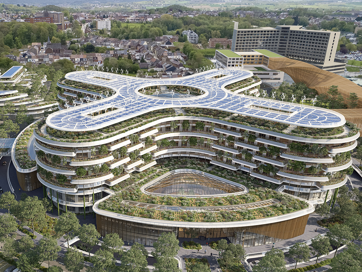 HOSPIWOOD는 라 루비에르 출신의 건축가 빈센트 칼레보의 마음에 특별히 가까운 프로젝트로, 그의 팀은 2021년부터 2023년까지 Groupe Jolimont Association을 위해 이 생물친화적 병원을 설계하면서 감동을 느꼈다.