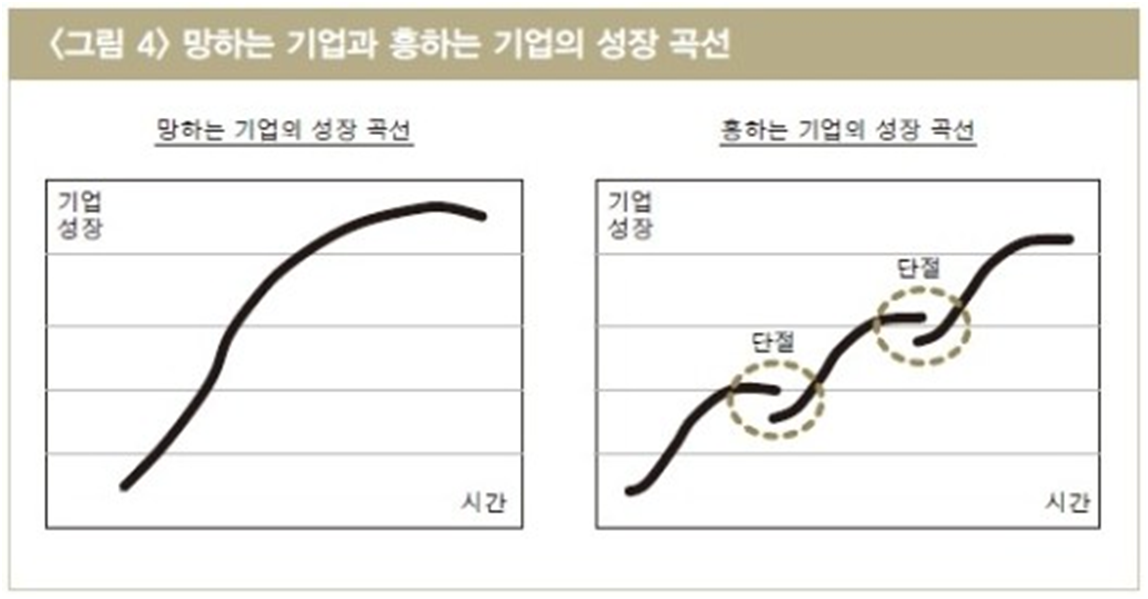 1982년에 Tom Peters라는 저자가 지은 “초우량 기업의 조건”이라는 책을 발간하고 그 자신이 초우량 작가가 된 그런 시기에 그 사람이 쓴 책에는 43개의 초우량 기업이라는 것이 나옵니다. 그 당시 1960년대부터 1980년대 초반까지 초강대국 미국에서 세계 초우량 기업이 된 그런 회사들이지요 43개의 회사를 분석하고 그 장점에 대해서 나열한 책인데 2009년 현재 그 회사들 중에 남아 있는 회사가 7-8개밖에 안 남았다고 합니다. 그 사람이 초우량 기업이라고 칭찬한 회사 중에 초우량으로 남아 있는 회사가 이제 7-8개밖에 안 남았다는 이야기지요…그때 당시에 초우량 기업이라고 한 기업들을 보면 정말 세계 최강의 기업들이었는데 그 기업이 불과 25년 정도의 세월 후에 남아 있는 것이 거의 없다는 것은 참으로 시사하는 바가 큰 것 같습니다.