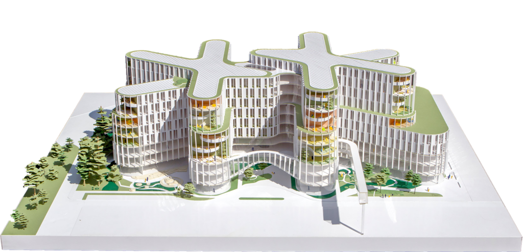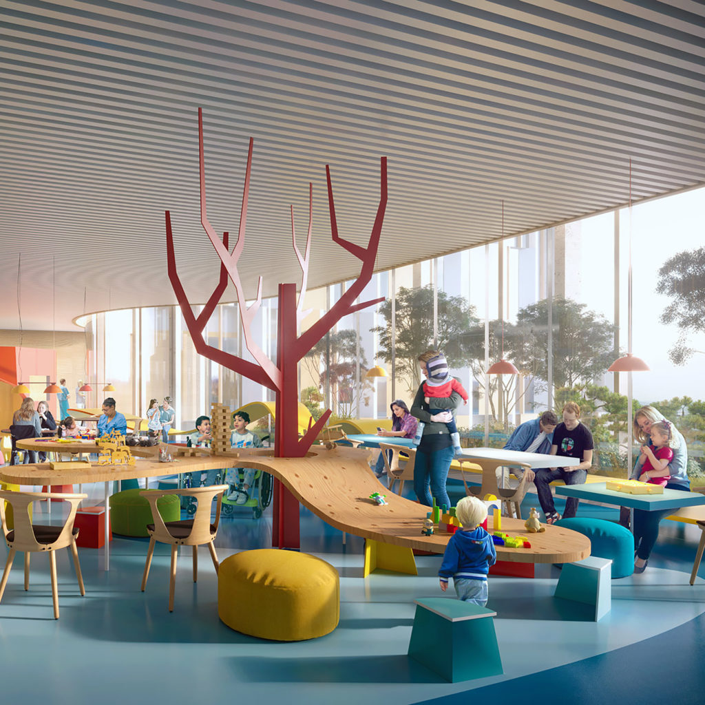 ©3XN 3XN 건축사사무소는 아치테마 건축가(Architema Architects), 니라스(Niras), 로산 보쉬 스튜디오(Rosan Bosch Studio), 하위 컨설턴트인 커스틴 옌스 테그네스테(Kirstine Jensens Tegnestue)와 팀을 구성해 치료의 필수적인 부분이 될 코펜하겐의 새로운 국립 소아병원 설계 공모에서 우승했다. 프로젝트 이름은 ‘BørneRiget’. 덴마크의 대표 병원인 코펜하겐의 국립의료원(Rigshospitalet)은 새로운 소아병원 설계 공모에서 우승한 병원을 공개했다. ‘BørneRiget’은 두 손가락 모양의 건물로, ‘소아 치료의 모든 측면을 한 지붕 아래에서 지탱한다’는 의미를 담고 있으며, 디자인은 ‘놀이처럼 논리적’이라는 주제를 갖고 있다. 특히 3XN은 ‘치료 중 환자와 가족의 경험 전체를 혁신할 기회’라는 병원 건설에 대한 야망을 품고, 환자에게 가능한 한 하루 일과에 가까운 일상을 유지하면서 가족과 함께할 기회를 제공하는 데 목표를 두었다.