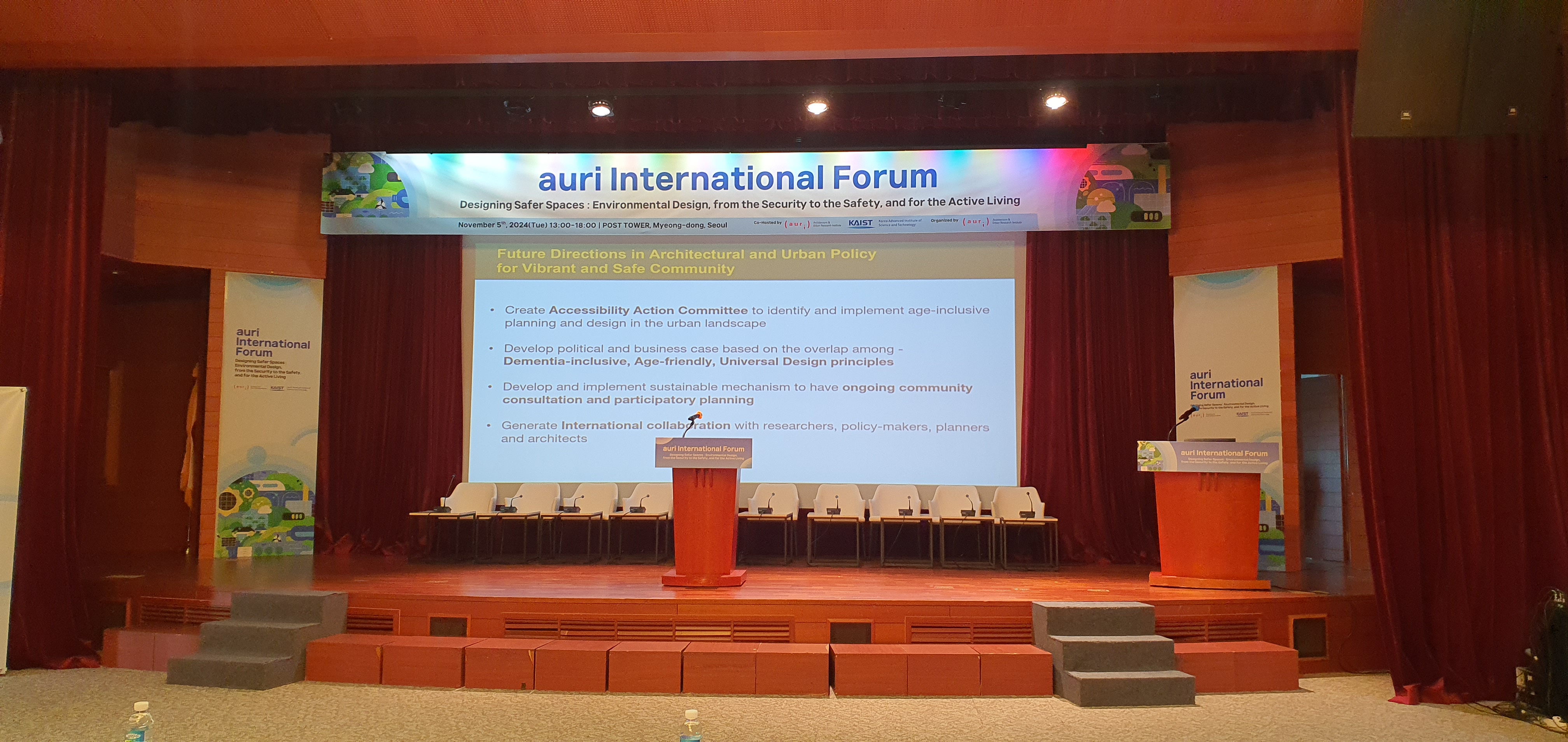 건축공간연구원과 KAIST가 공동으로 주최하는 ‘건축공간연구원 국제 포럼-AURI International Forum’이 지난 11월 5일 명동 포스트타워 대회의실에서 개최되었다. 이번 포럼은 한국과학기술원의 임리사 교수의 사회로 진행되었으며, <활기찬 일상생활 지원을 위한 통합안전 건축도시설계: 환경설계 기반 건축도시공간 정책연구·지원의 확장을 논하다 (Designing Safer Spaces : Environmental Design, from the Security to the Safety, and for the Active Living)>의 긴 주제로 진행되었다. 이번 행사는 총 5명의 국내외 연사들의 발제로 진행되었으며, 그중 Habib Chaudhury 교수(Simon Fraser University, Canada)의 ‘치매 어르신도 안전하고 활기차게 생활할 수 있는 공간환경 조성(Developing Dementia-Inclusive Neighbourhood Environment)’과 강범준 교수(서울대학교)의 ‘서울에서 고령자로 안전하고 활기차게 생활하기 : 초고령사회에서의 공간적 이슈 찾기(Activity Space of Older Adults in Seoul: Finding Spatial Issues in a Super-aged Society)’의 내용이 가장 인상 깊었다. 이 두 명의 연사는 실체 치매 환자와 고령자를 직접 참여 관찰하거나 인터뷰하면서 초고령사회로의 진입이 머지않은 한국에 안전한 도시환경을 위해 필요한 부분은 무엇인지 구체적인 사례를 들어 자세히 설명해 주었다. 이번 매거진HD에서는 이 두 명의 연사가 발표한 내용을 집중 조명했다.