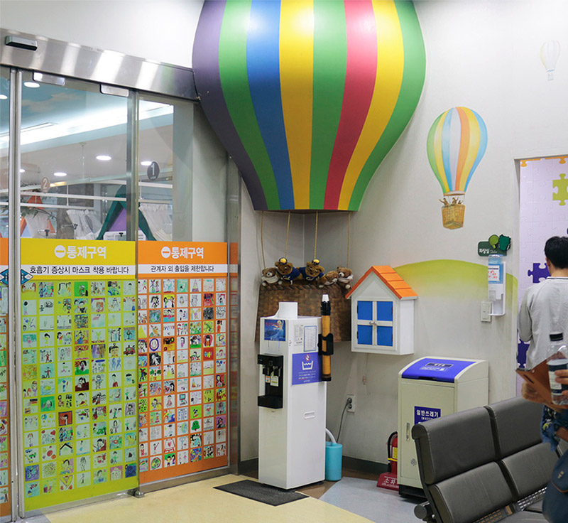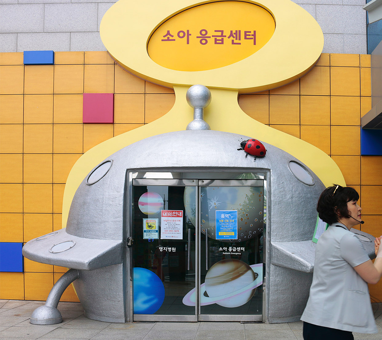 소아응급센터는 아이들의 두려움을 줄이고 편안한 감정을 느낄 수 있도록 입구에서부터 우주선과 같은 형태가 아동들을 맞이하고, 헬리콥터 조명과 다채로운 색상 등이 적용되어 아이들의 시선을 사로잡는다.