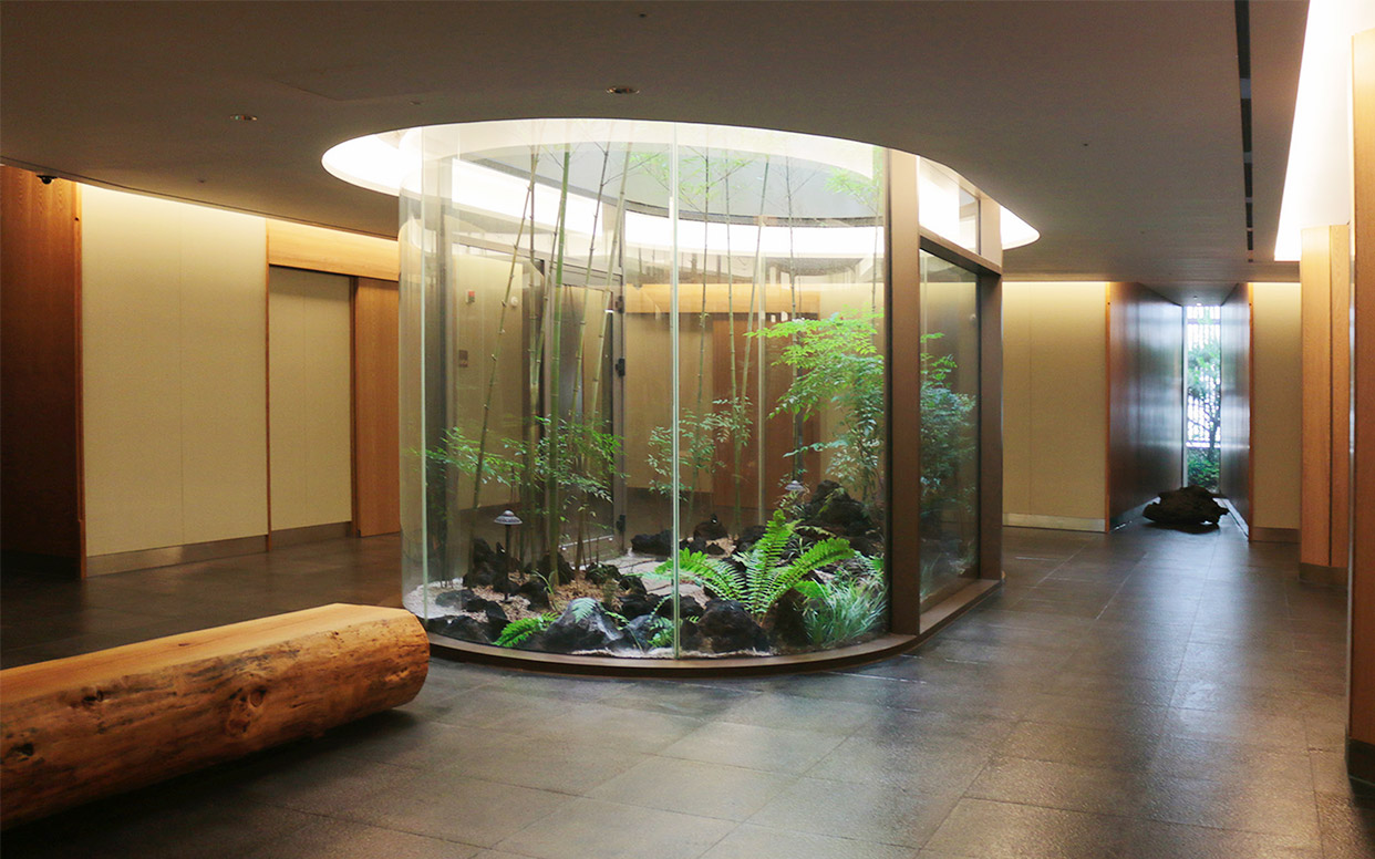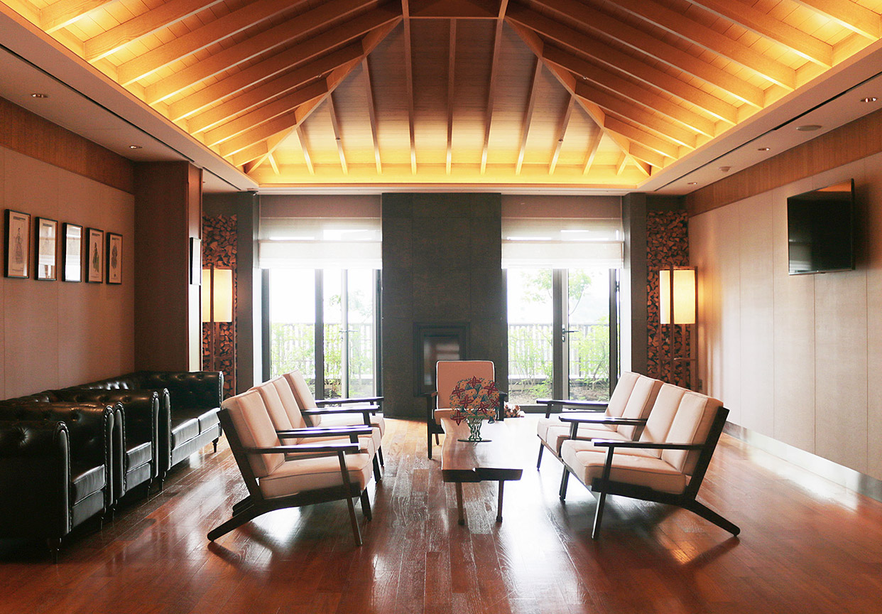 이후 방문한 VIP 입원실에서는 입구에서부터 마주한 야외와 연결된 중정에 시선을 빼앗기고 말았다. 실외와 실내가 혼합된 공간은 간접등이 시각적으로 차분한 분위기를 더하며 한층 편안하고 중후한 분위기를 내었다. 마치 고급호텔에 들어온 듯한 기분이다. 1인실로 제공되는 병실의 모든 가구는 못이 사용되지 않은 짜맞춤 가구로 제작되었다. 그리고 입원실에는 이발소, 식당, 회의실, 스파, 기도실 등 고급호텔과 같은 부대시설들이 비치되어 병원에서의 서비스 경험을 극대화하고 있었다.