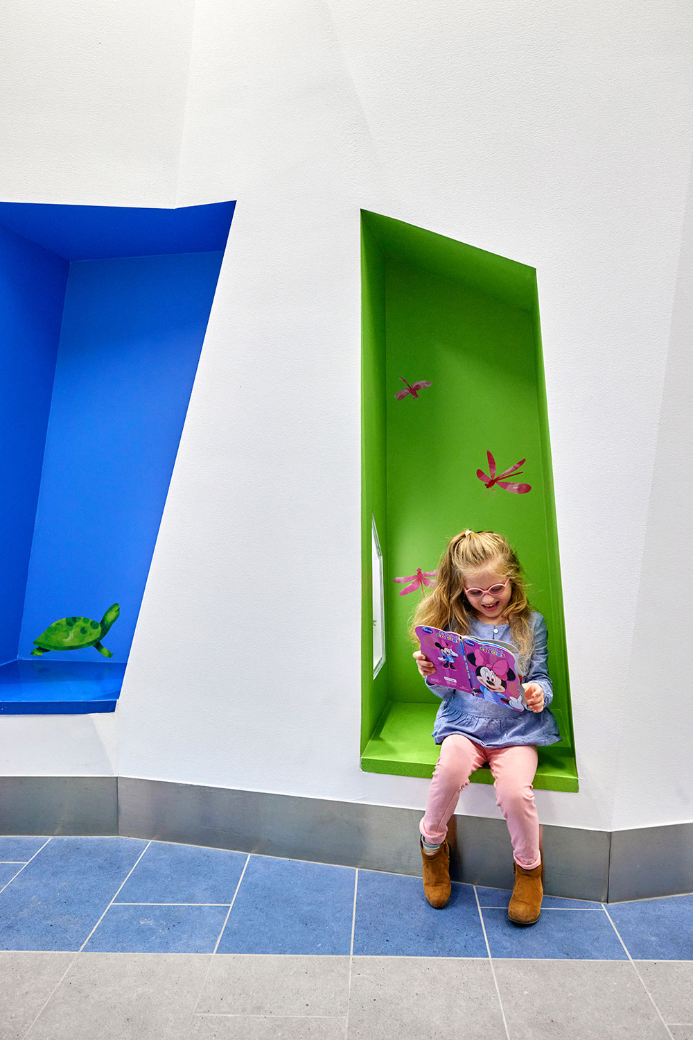 타워의 다채로운 실내 건축은 제임스 강과 다양한 서식지에서 영감을 얻었다. 각 층마다 강에 서식하는 동물 마스코트와 함께 향상된 색상 테마가 있어 길 찾기에 도움을 준다. 특히 인터랙티브 ‘그림자 놀이’ 구역, 발견 상자, 다채로운 지역 예술 작품이 더해져 병원 방문의 불안을 줄이고 즐거운 경험을 제공하고 있다.