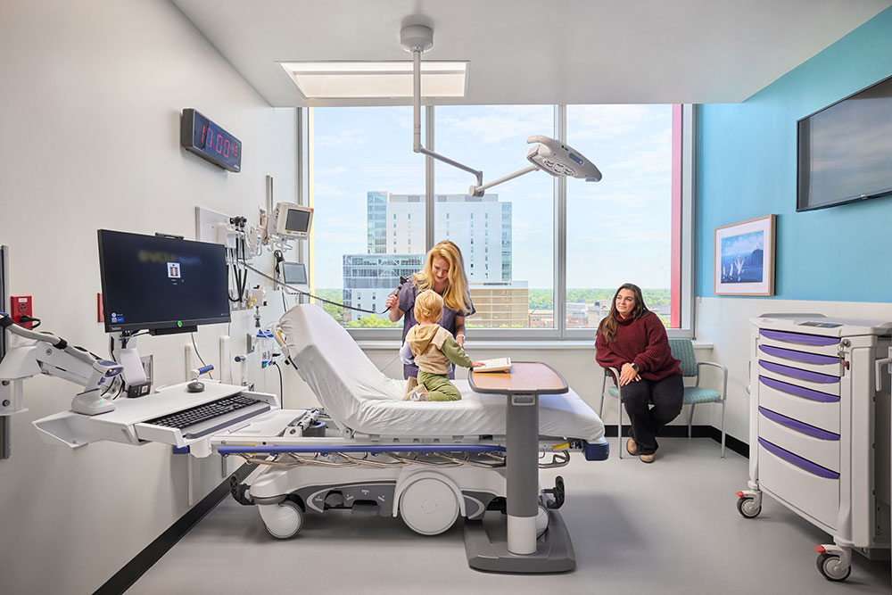 건물과 부서가 형성되기 시작하면서 프로젝트팀은, 의사결정에 도움을 주기 위해 근거 기반 설계 개념과 프로세스를 참고했다. 특히 버지니아 대학교와 협력하여 소아 의료를 변화시키는 다양한 요인을 파악하기 위해 문헌 조사를 실시했다. 또한 직원들이 부서 및 방 배치를 경험하고 테스트할 수 있도록 일련의 물리적 및 가상 모형을 제작하여, 향후 운영 워크플로를 지원하는 최적의 구성을 결정하는 데 도움이 되었다.