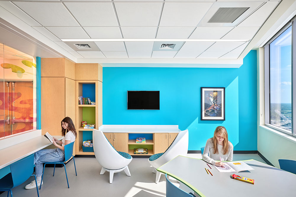 환자들은 자신의 방 밖에서 여러 놀이 공간, 청소년 라운지, 발달 체육관, 공연실 등 여러 공간에 쉽게 접근할 수 있다. 그만큼 이러한 공간들이 발달 성장에 긍정적인 에너지를 가져다주고 어려운 시기에 정상적인 일상을 느낄 수 있도록 도와주었다.