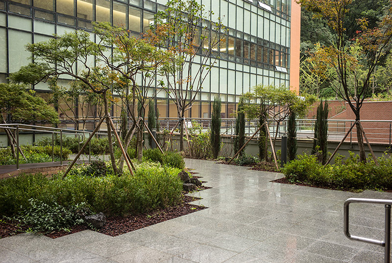 뿐만 아니라 국내 최대 규모로 친환경 힐링 공간인 ‘치유의 숲’을 조성했고, 옥상도 넓은 잔디광장과 함께 상록 관목을 심어 마치 자연 속에 안긴듯한 느낌을 경험하도록 했습니다.