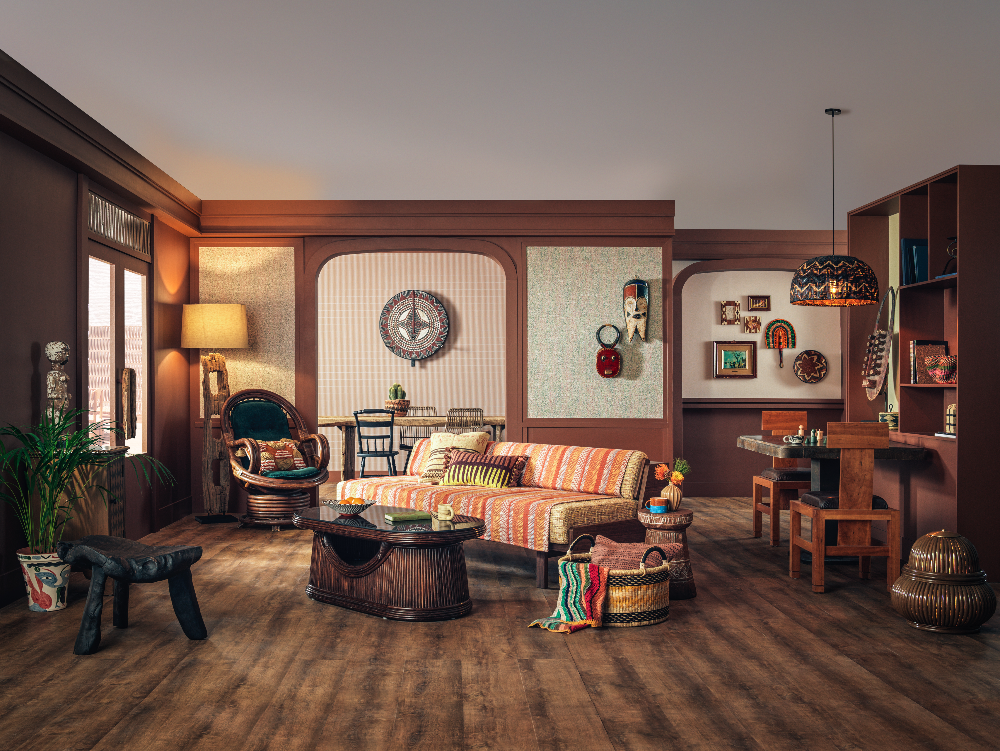 부스트 트렌디 홈에서는 공동체 의식이 강한 라틴아메리카와 남아프리카 문화에 주목하고, 삶의 자율성을 보장하면서도 타인과 다양한 관계를 맺는 새로운 주거 공동체의 모습을 보여준다. 따라서 다양한 아날로그 취미 활동을 에너제틱하게 즐길 수 있도록 오픈형 다층 구조를 메인 디자인으로 정했다. 공간 전체를 감싸는 짙은 우드 소재에 에스닉한 패턴을 믹스매치하면 낮에는 생동감을, 밤에는 아늑한 무드를 연출할 수 있다.