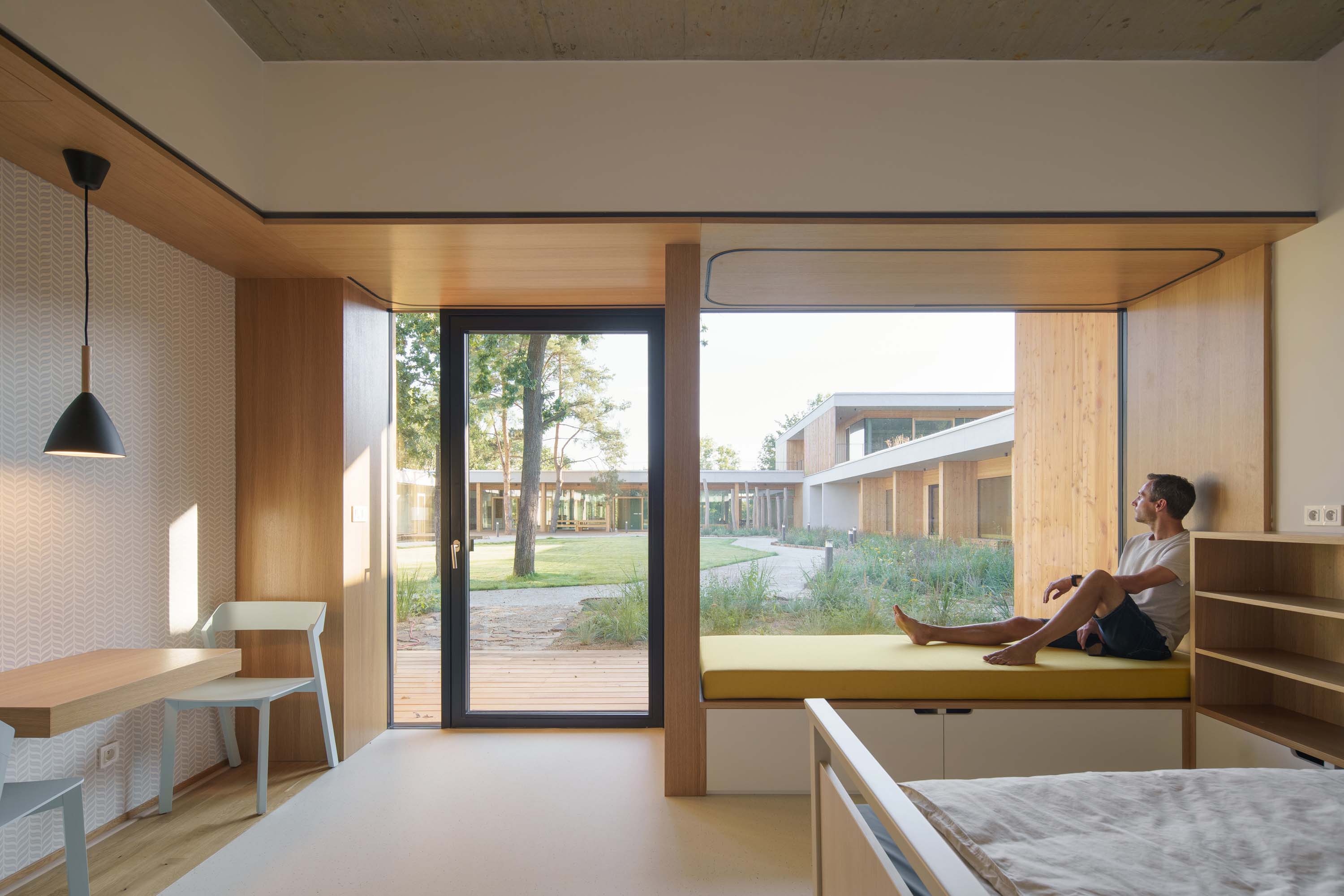 ČTYŘSTĚN Dětský hospic Dům pro Julii - photo by alex shoots buildings ČTYŘSTĚN Dětský hospic Dům pro Julii - photo by alex shoots buildings ČTYŘSTĚN Dětský hospic Dům pro Julii - photo by alex shoots buildings ČTYŘSTĚN Dětský hospic Dům pro Julii - photo by alex shoots buildings ČTYŘSTĚN Dětský hospic Dům pro Julii - photo by alex shoots buildings ČTYŘSTĚN Dětský hospic Dům pro Julii - photo by alex shoots buildings ČTYŘSTĚN Dětský hospic Dům pro Julii - photo by alex shoots buildings ČTYŘSTĚN Dětský hospic Dům pro Julii - photo by alex shoots buildings ČTYŘSTĚN Dětský hospic Dům pro Julii - photo by alex shoots buildings 세 번째 구역에는 고객을 위한 주요 숙소가 마련되어 있다. 10개의 어린이 방은 각각 작은 개인 테라스를 가지고 있으며, 큰 중앙 안뜰을 둘러싸고 있어 아늑한 분위기가 느껴진다. 더욱이 간호사 스테이션과 마지막 작별을 위한 별도의 아파트도 마련된 점이 인상 깊다.