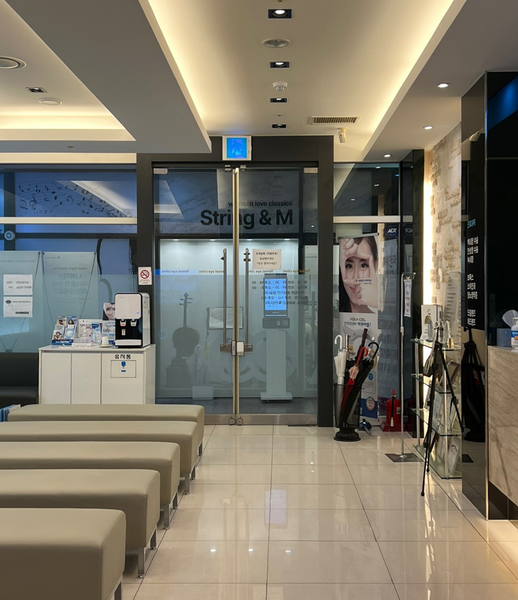 안과 디자인은 다른 과에 비해 공간을 멋지고 화려하게 꾸미는 데 치중하기 보다는, 깔끔하고 깨끗한 인테리어가 중요합니다. 그래서 자재 선정에 있어 최대한 신경을 많이 썼다고 볼 수 있습니다. 바닥의 경우 안전을 생각해서 미끄러지지 않도록 고급스럽고 좋은 자재를 사용했습니다. 그리고 동선이 무엇보다 중요합니다. 최대한 동선을 환자 편의에 맞춰서 진행했습니다. 사실 처음에는 수술실이 병원 안쪽에 있었습니다. 그러다가 6, 7년 전에 리모델링을 하면서 외부로 뺐습니다. 수술방은 밖으로 빼고 대신 안쪽에 직원들을 위한 탈의실 공간으로 넓혀주었습니다. 또 안구 건조증 환자들이 많다 보니 IPL 치료실과 검사실도 조금 더 넓혀주었습니다.