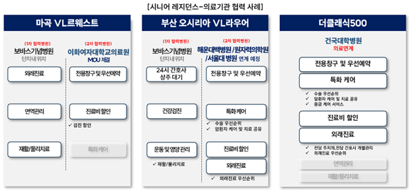 이에 따라 현재 국내의 시니어 레지던스 사례를 보면 인근 상급병원과 MOU를 통해 연계 서비스를 제공하거나, 단지 내 정식 의원을 유치하여 직접 의료 서비스를 제공하는 형태로 운영되고 있다.