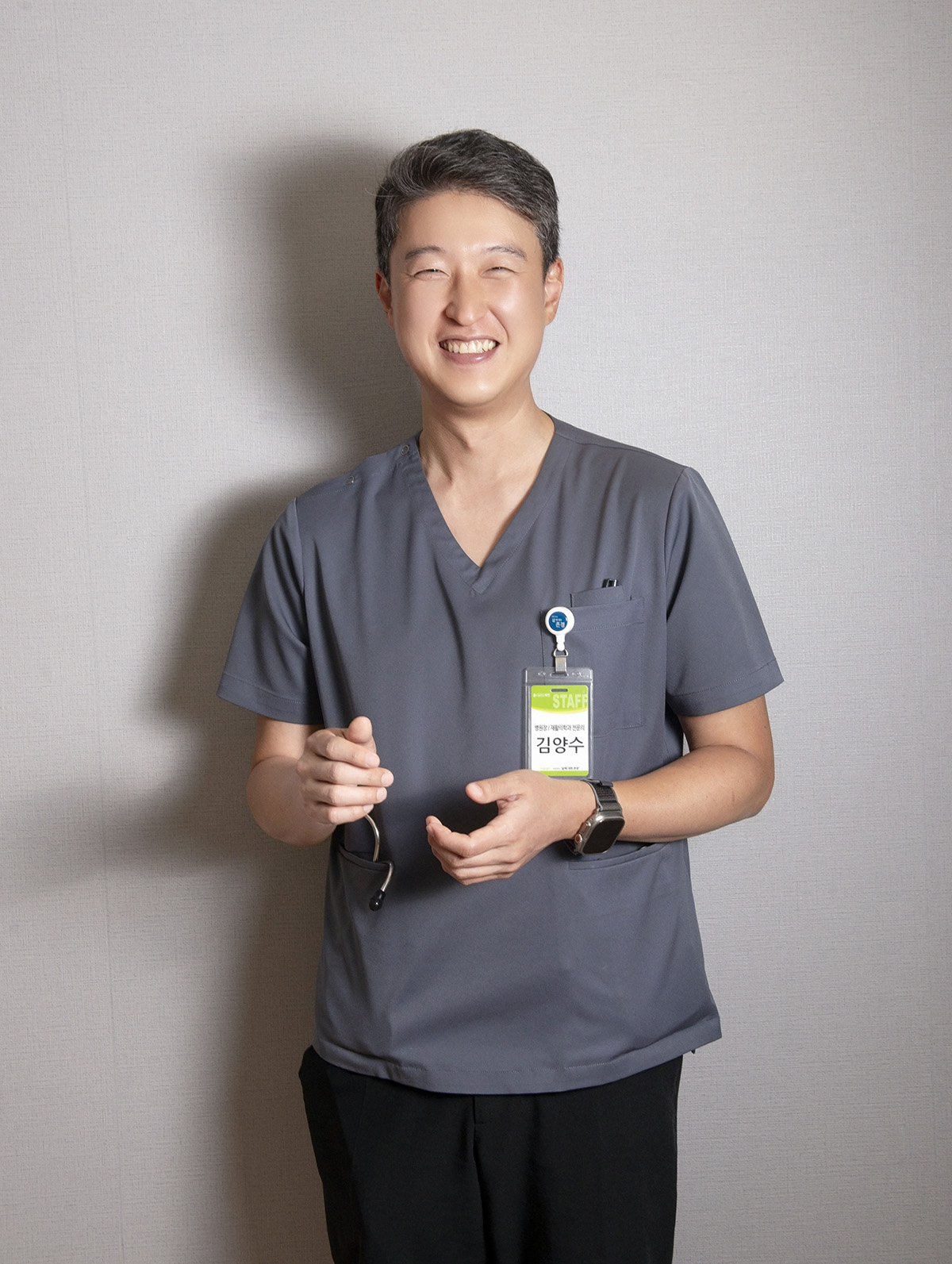 우리 병원의 재활 치료사는 총 280여 명으로, 환자 한 분 한 분을 1:1 맞춤형으로 케어하고 있습니다. 이처럼 재활 치료사 수가 많은 것이 과하다고 생각할 수도 있지만, 주말까지도 환자분들을 지속적으로 돌봐야 하는 상황을 고려하면 당연한 조치라고 믿고 있습니다. 또한 재활의학과 의사 역시 기준 인원보다 더 많이 배치하여 환자 치료에 최선을 다하고 있습니다.