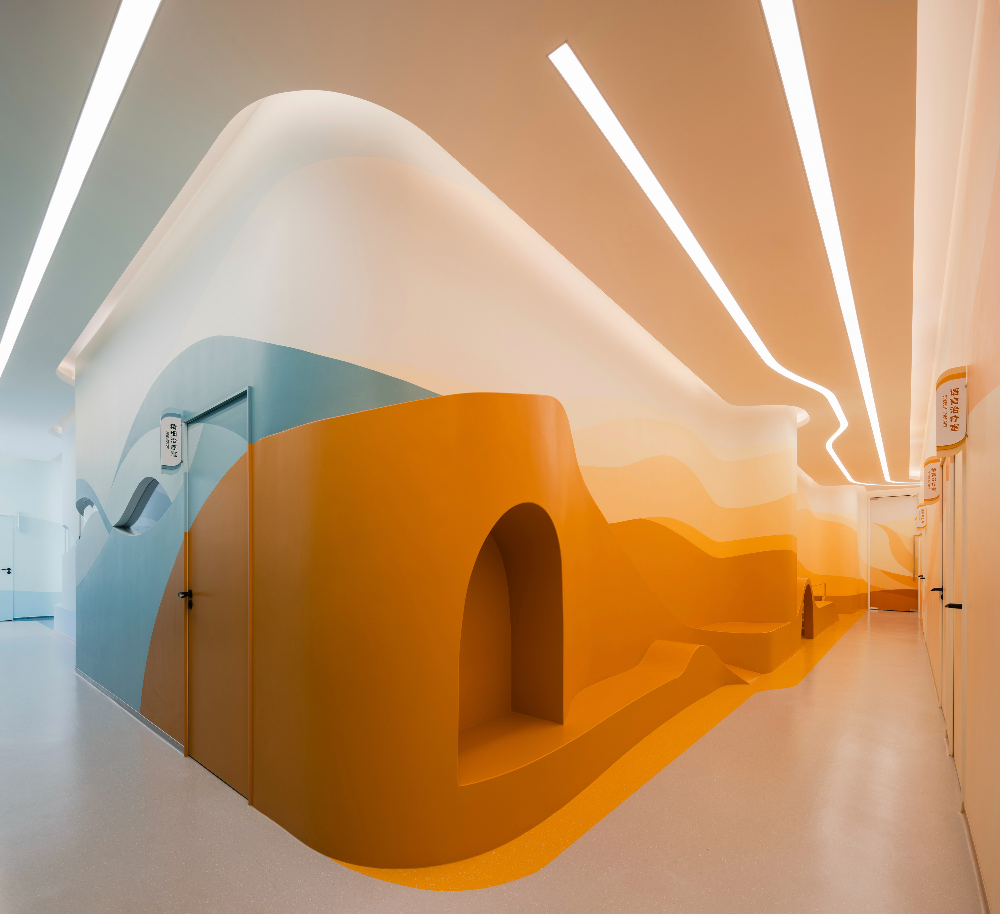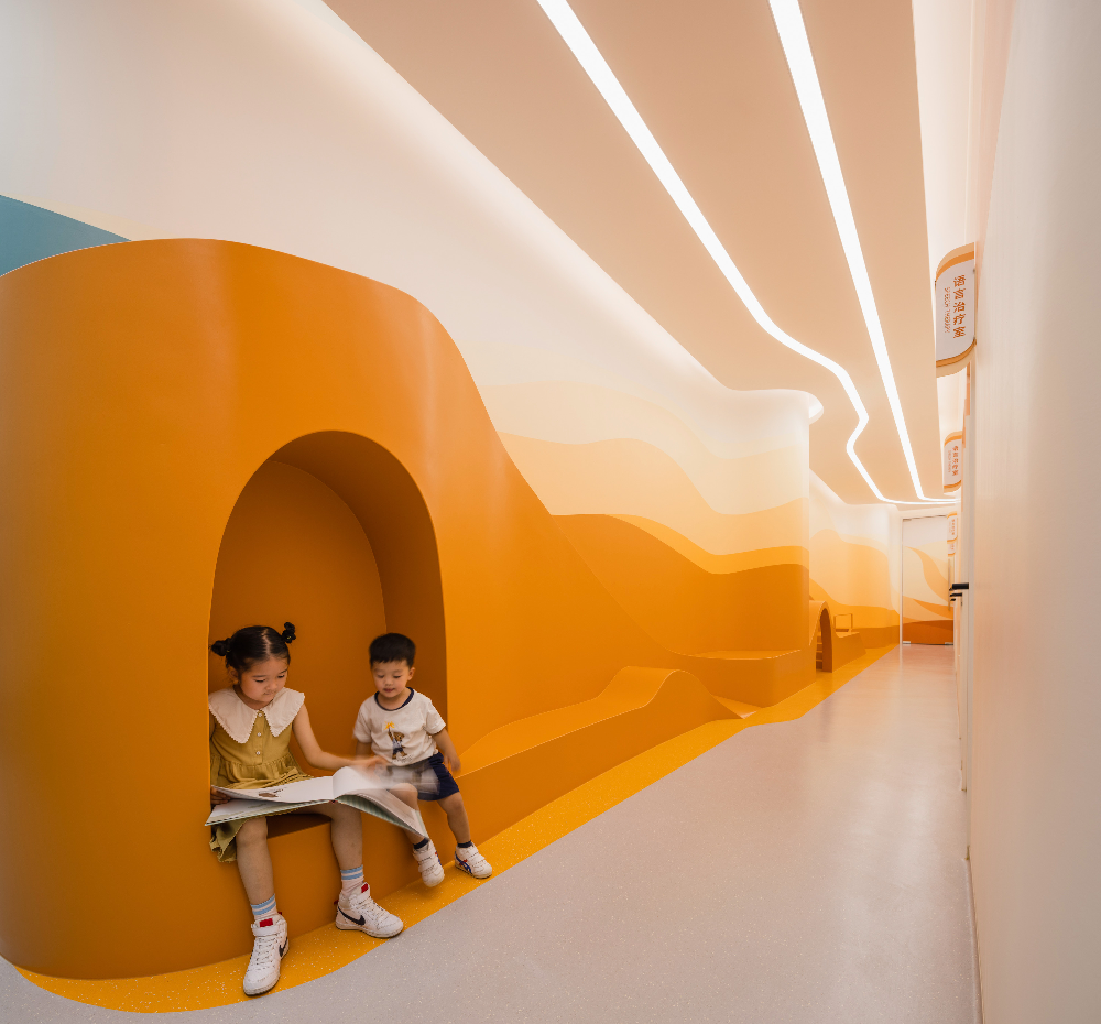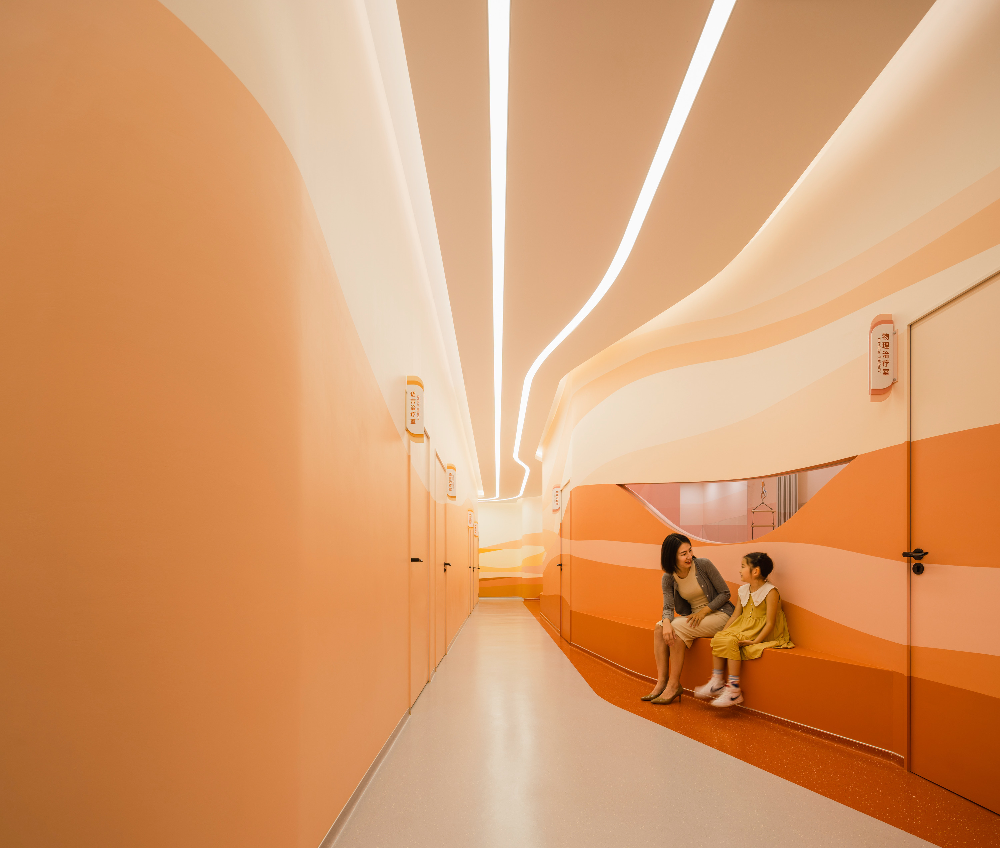 ©Wen Studio_UNStudio-Flysolo-21_wwwkits 치료실 밖 대기 공간에는 아이들이 즐겁게 놀 수 있도록 미니 슬라이드와 인터랙티브 좌석이 마련되어 있다. 또한, 아이들이 놀 수 있는 작은 공간과 대기 중인 보호자 및 가족들의 프라이버시를 보호해 줄 수 있는 공간도 별도로 마련되어 있다.