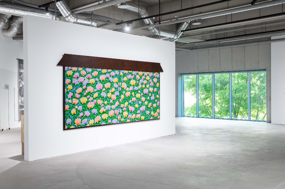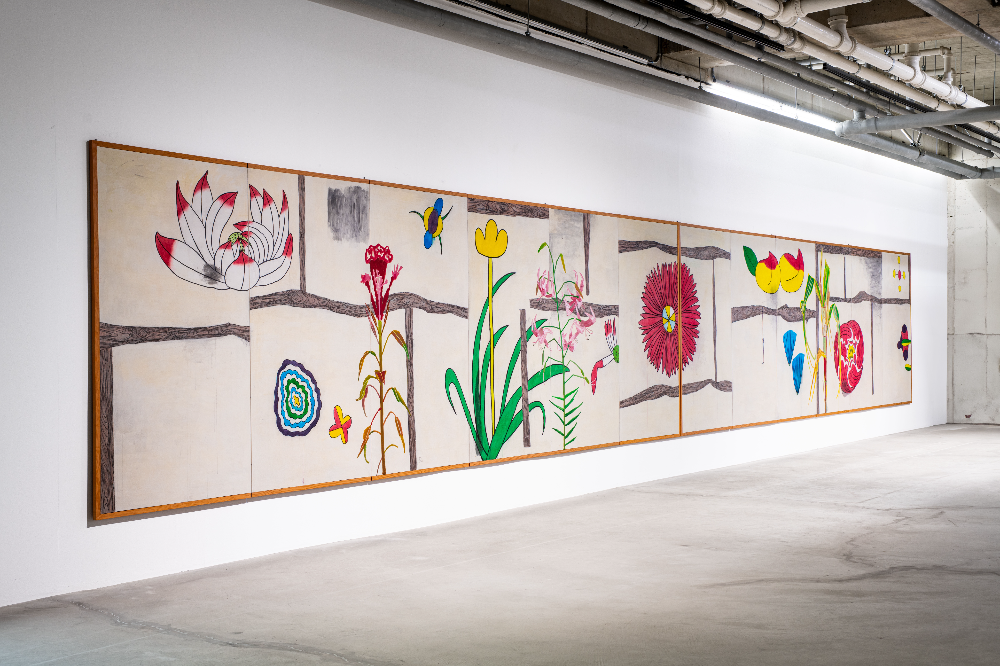 《생태의 집 – 한옥》 김선두, 지지않는 꽃, 2025, 장지에 먹, 분채, 165 x 84 cm