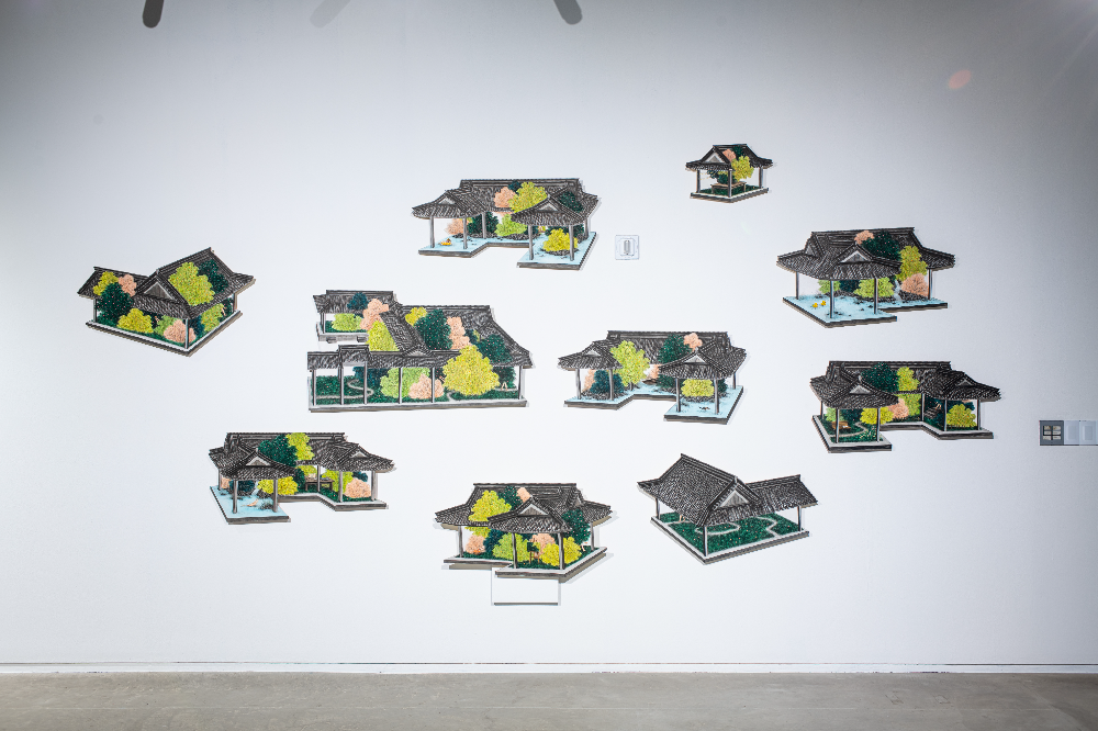 《생태의 집 – 한옥》김민주, 문답-집, 2025, 장지에 먹, 분채, 채색, 가변크기