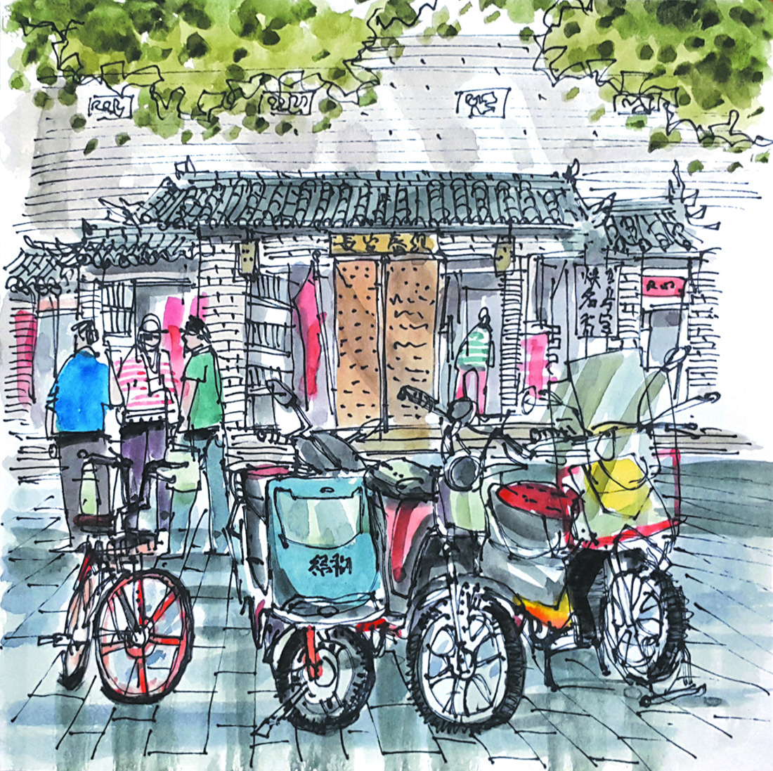 중국 서안 서원문거리 02 인근 서원문 거리는 우리의 인사동처럼 명, 청 시대의 옛 정취가 물씬 풍기는 상가 거리로 연속된 2, 3층 소규모의 낮고 친근한 건물에서 서예용품, 그림, 골동품, 도장, 액세서리를 진열하여 판매하고 있다. 오후 햇볕이 가로수들 사이로 흩어지며 길거리 빈티지 모습의 상가 분위기를 레트로한 분위기로 연출한다. 이런 날은 시간이 정지된 것처럼 한가롭게 느릿한 걸음으로 걸을수록 좋다.