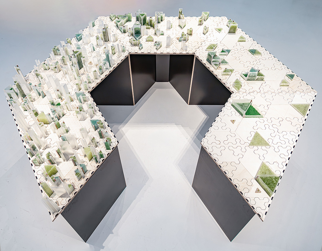 ecoLogicStudio_CryoflorE © Synthetic Landscape Lab (Xiao Wang) 03 2년마다 열리는 이 비엔날레는, ‘Soleil·s’라는 주제로, 전시회뿐만 아니라 레지던시, 문화 홍보 활동, 다양한 이벤트를 통해 인간과 물질문화, 그리고 태양과의 관계를 조명한다. MUDAC의 자연 채광이 가득한 전시장에는 이 프로젝트가 대규모 도시 모형 형태로 펼쳐지며, 살아있는 생촉매 세포로 작동되면서 성장하는 도시 풍경을 제안하고 있다.