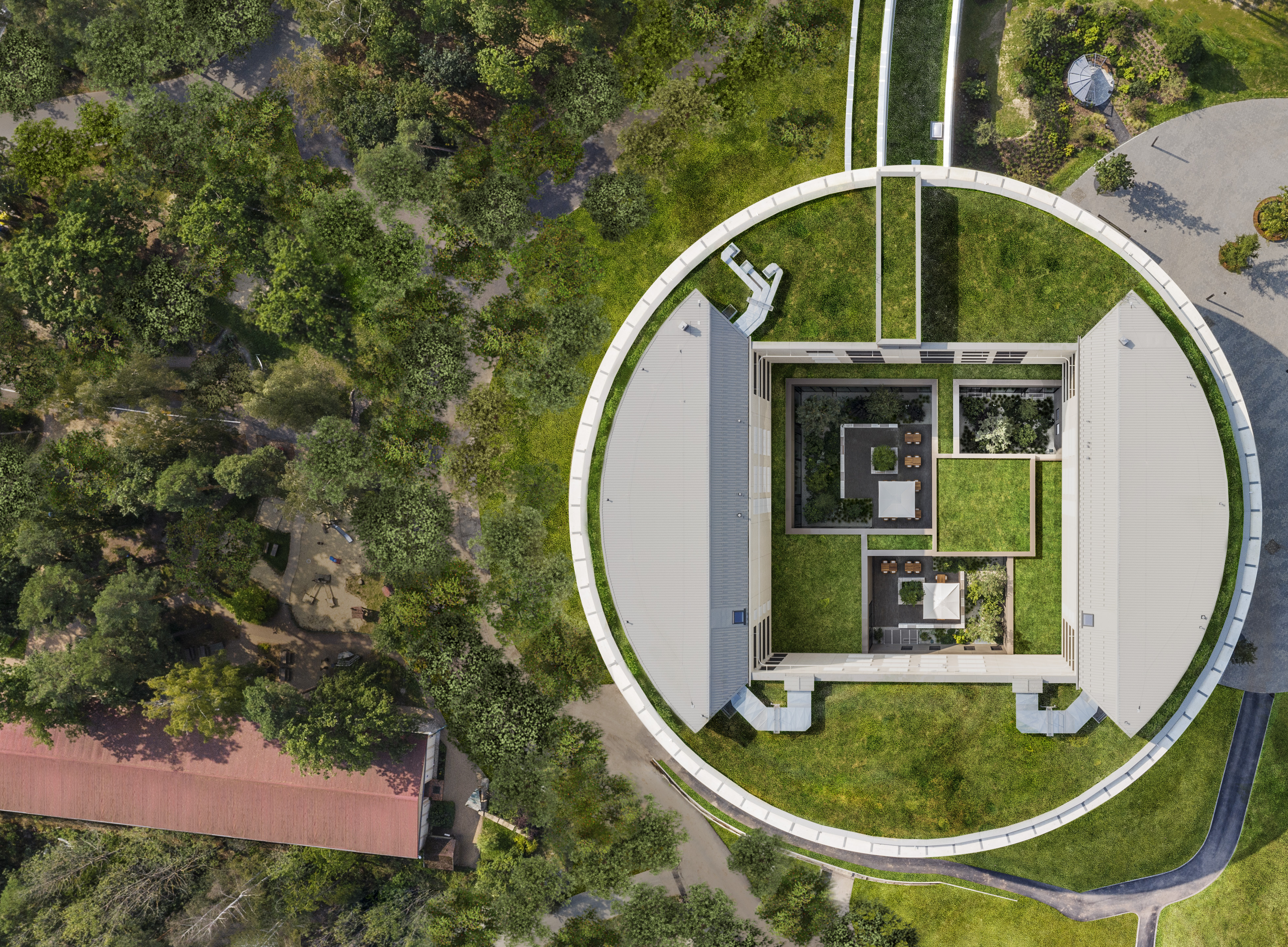 MatteoThun&Partners_ForestClinic©GionataXerra 독일 최대 정형외과 센터인 아이젠베르크 포레스트 클리닉은 호텔의 편안함과 의료적 기능성이 융합된 ‘호스피텍처(hospitecture)’를 통해 병원 디자인을 새롭게 정의했다고 볼 수 있다. 전체 건축물은 녹색 지붕과 혁신적인 열 시스템을 통해 에너지를 효율적으로 전달하고 있다. 숲으로 둘러싸인 원형의 목재 외장 구조는 자연광, 환기, 녹지, 음향적 따뜻함을 제공함과 동시에 치유를 증진시킨다. 내부 디자인에서 두 개의 침대가 있는 공간의 경우, 서로 다른 높이로 배치되어 있는데, 이는 프라이버시 유지 및 공용 베란다를 통한 커뮤니티 형성에 많은 이점을 가져다주고 있다. 또한 웰빙을 최우선으로 생각하는 병원답게 직원 전용 휴식 공간을 마련한 점도 돋보인다. 85%의 지역 인력을 보유한 이 병원은, 지역 사회의 성장을 지원하는 동시에 지속 가능한 환자 중심 의료 환경의 새로운 기준을 제시하고 있다고 볼 수 있다.