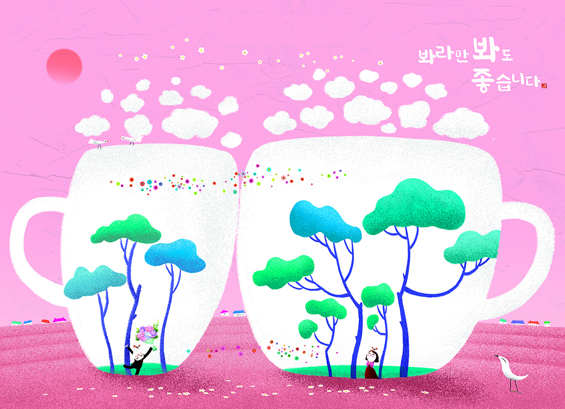 세 가지 일을 하느라 바쁜 와중에도 그림 그리기는 매일 빼놓지 않는 일과이며 정기적으로 전시회를 연다. 다수의 기업과 협업 작업(캐릭터 활용 달력 제작 등)을 활발하게 진행하고 있다. ‘긍정’과 ‘행복’을 시각언어로 풀어낸 캐릭터 작업으로 ‘행복을 그리는 긍정작가’로 알려져 있다.
