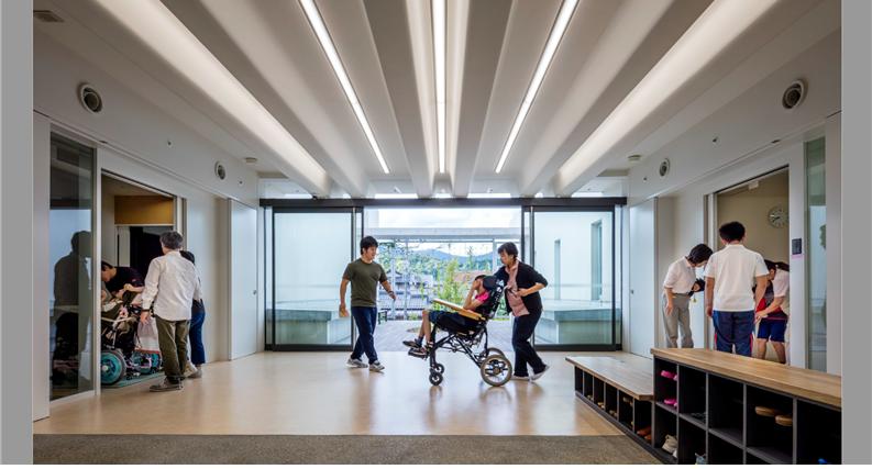 이들은 단순한 시설의 설계가 아니라 어린이들의 가장 가까운 곳에서 이루어지는 호스피탈리티라는 처음 목적의 원점으로 돌아가서, 세상을 살아가는 힘을 길러 주는 장소를 마련하는 프로젝트였습니다. 안심과 안전으로 둘러싸인 공간 속에서 생활 리듬을 가다듬고 놀이를 통해 성장함으로써, 장애가 있는 아이들 역시 모두 평등하게 풍요로운 미래를 그려갈 수 있는 한 걸음을 함께 내딛는 공간을 실현하고자 했습니다.