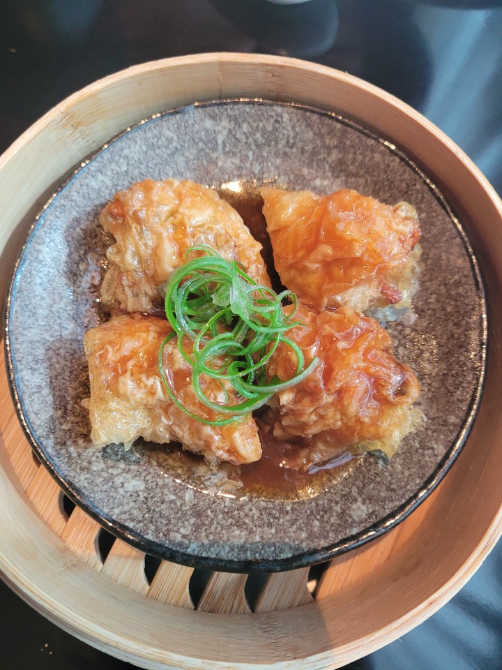 잘근잘근한 가루파와 관자를 품은 ‘캐비아를 곁들인 해물 딤섬’, 반숙 메추리알의 눅진한 노른자가 터지며 입안에서 트러플 향과 함께 고소한 맛이 번지는 ‘메추리알 트러플 샤오마이’, 겉바속촉한 북경오리 춘권, 쌀가루 전병의 부드러우면서 차진 식감 사이로 버무린 양념 돼지고기 맛이 우러나는 ‘차슈 바비큐 창펀腸紛’등의 창의적인 맛에 살짝 감동을 느낀다.