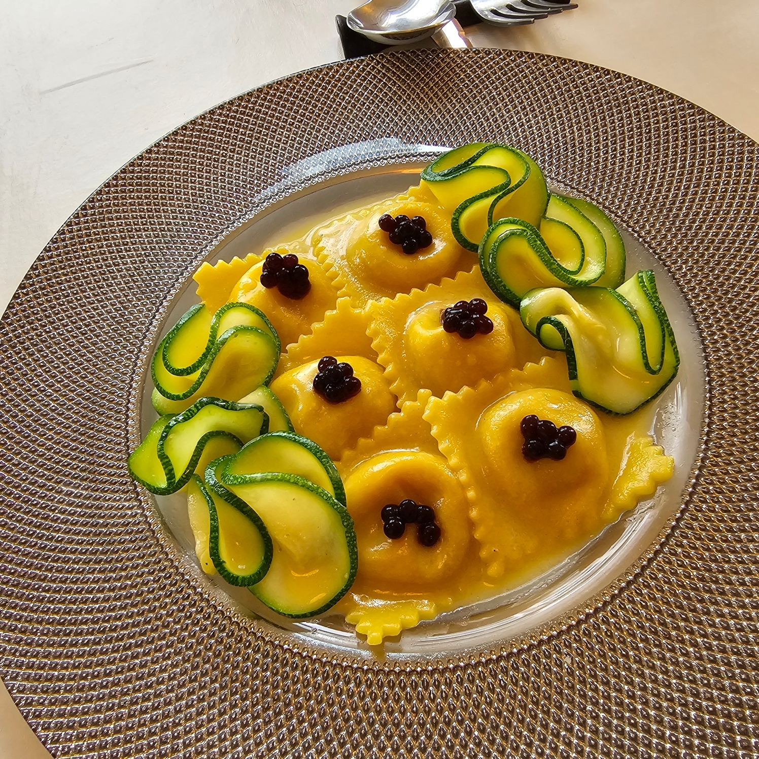 트라토리아 로마냐의 메뉴는 이탈리아 요리의 기본을 지키면서도 이곳만의 독창적인 '킥'을 더해 미각을 즐겁게 한다. 가장 먼저 추천하고 싶은 메뉴는 단연 '트러플 아란치니'다. 트러플 모양을 본따 만든 검은 먹물 튀김 옷 속에는 샤프란 리조또와 치즈가 가득 차 있어, 한 입 베어 무는 순간 진한 트러플 향과 고소한 치즈가 입안에서 황홀한 조화를 이룬다. 돌맹이 모양의 시각적인 재미와 바삭한 식감, 트러플의 향이 잘 어우러지는 오감 만족을 동시에 주는 이곳의 시그니처 에피타이저다. 또한, 생면 파스타의 진수를 보여준다. 특히 '라비올리'는 쫄깃하면서도 부드러운 생면의 식감이 일품이며, 속을 꽉 채운 재료들이 소스와 어우러져 깊은 풍미를 자랑한다. 쌀쌀한 기운이 남아있는 요즘 같은 날씨에는 오랜 시간 볶아낸 양파의 달큰함과 치즈의 풍미가 녹아든 '어니언 스프'도 빼놓을 수 없다. 로마냐에서만 느낄 수 있는 셰프의 위트를 느낄 수 있는 따끈한 스프 한 숟가락이면 겨우내 얼어있던 몸과 마음이 사르르 녹아내리는 기분을 느낄 수 있다. 와인 리스트 또한 훌륭하여 음식과의 페어링을 즐기는 미식가들에게도 부족함이 없다.