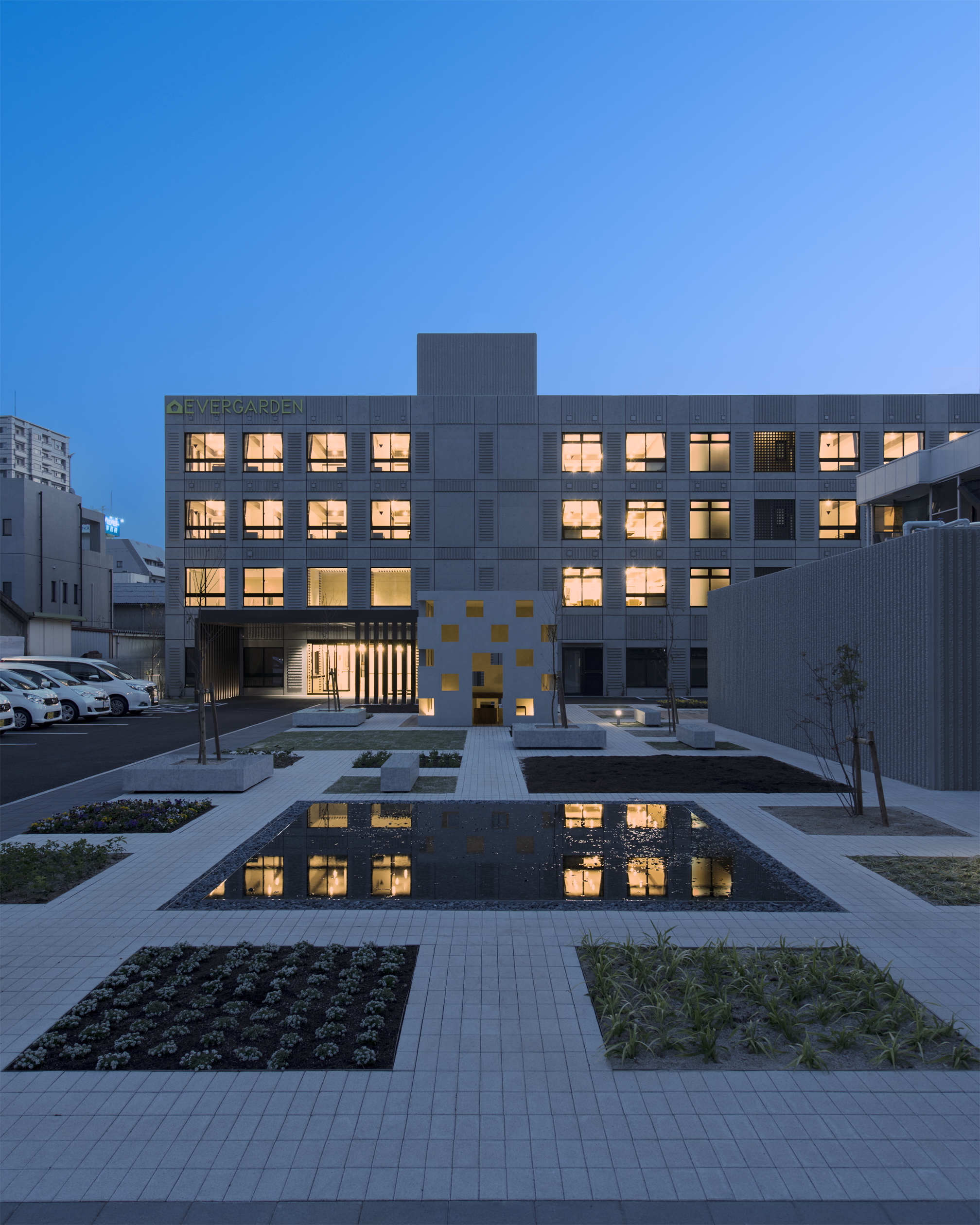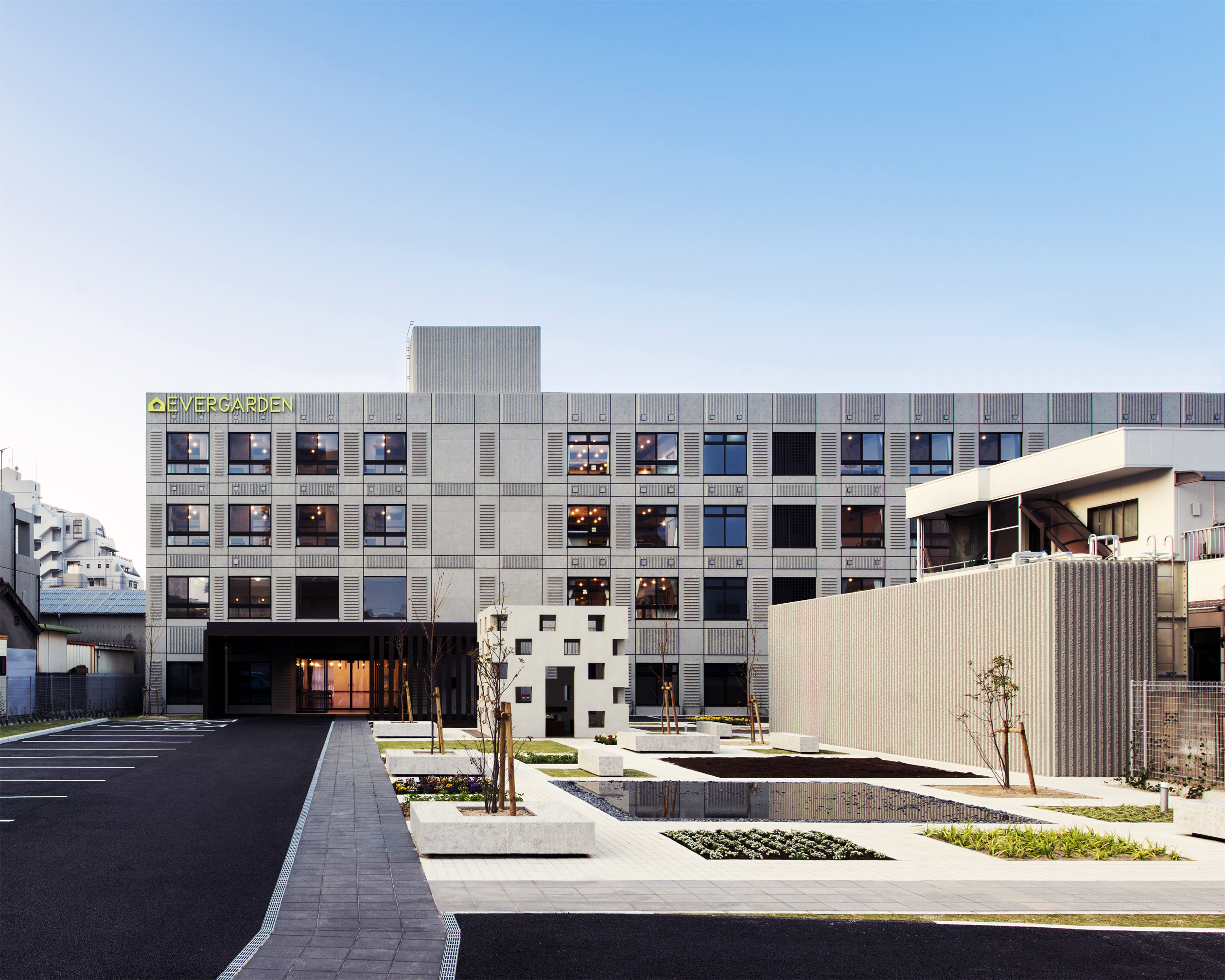일본 후쿠오카현 구루메시에 위치한 이 요양시설은 구루메역에서 도보로 단 6분 거리에 자리하며, 도심 한가운데 입지한 점이 특징이다. 일반적으로 요양시설은 토지 비용 절감과 정온한 환경 확보를 위해 교외에 조성되는 경우가 많지만, 이 시설은 도심 입지를 선택함으로써 대중교통 접근성과 의료 서비스 이용 측면에서 뛰어난 편의성을 확보했다. 더불어 가족 방문이 수월해 입주민의 일상적 교류를 촉진하며, 지역 사회와의 연결성을 강화하는 개방적 설계가 돋보인다.