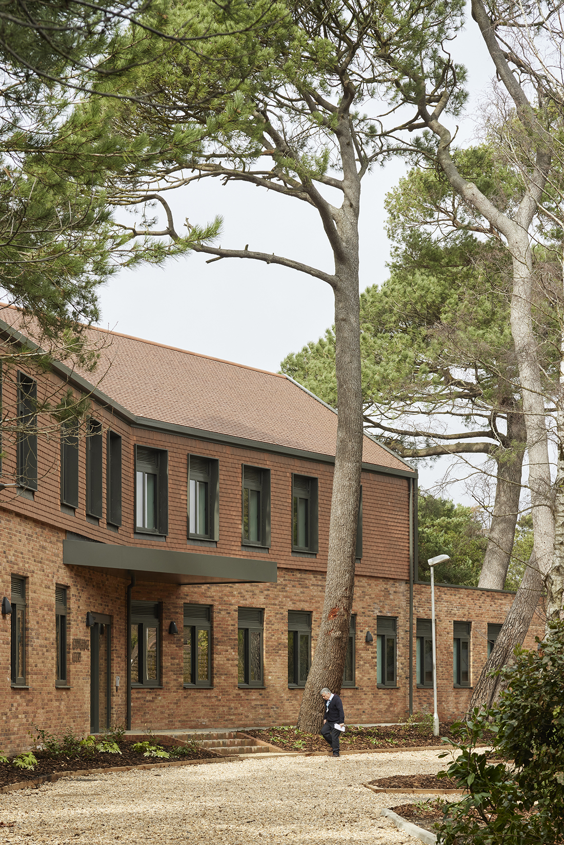 이 건물은 도싯 세인트 앤스 병원(St Ann’s Hospital) 부지 내 해안가 모래언덕에 자리하며, 부지를 채우고 있는 오래된 해안 수목 보존과 주변 지역 맥락 존중을 핵심 원칙으로 삼아 계획됐다. 건물의 규모와 배치는 기존 자연환경에 대한 개입을 최소화하는 방향으로 설정됐고, 이에 따라 2층 규모의 매스는 도로 방향으로 갈수록 1층으로 낮아지는 단계적 구성을 통해 주변 경관과 자연스럽게 어우러진다.