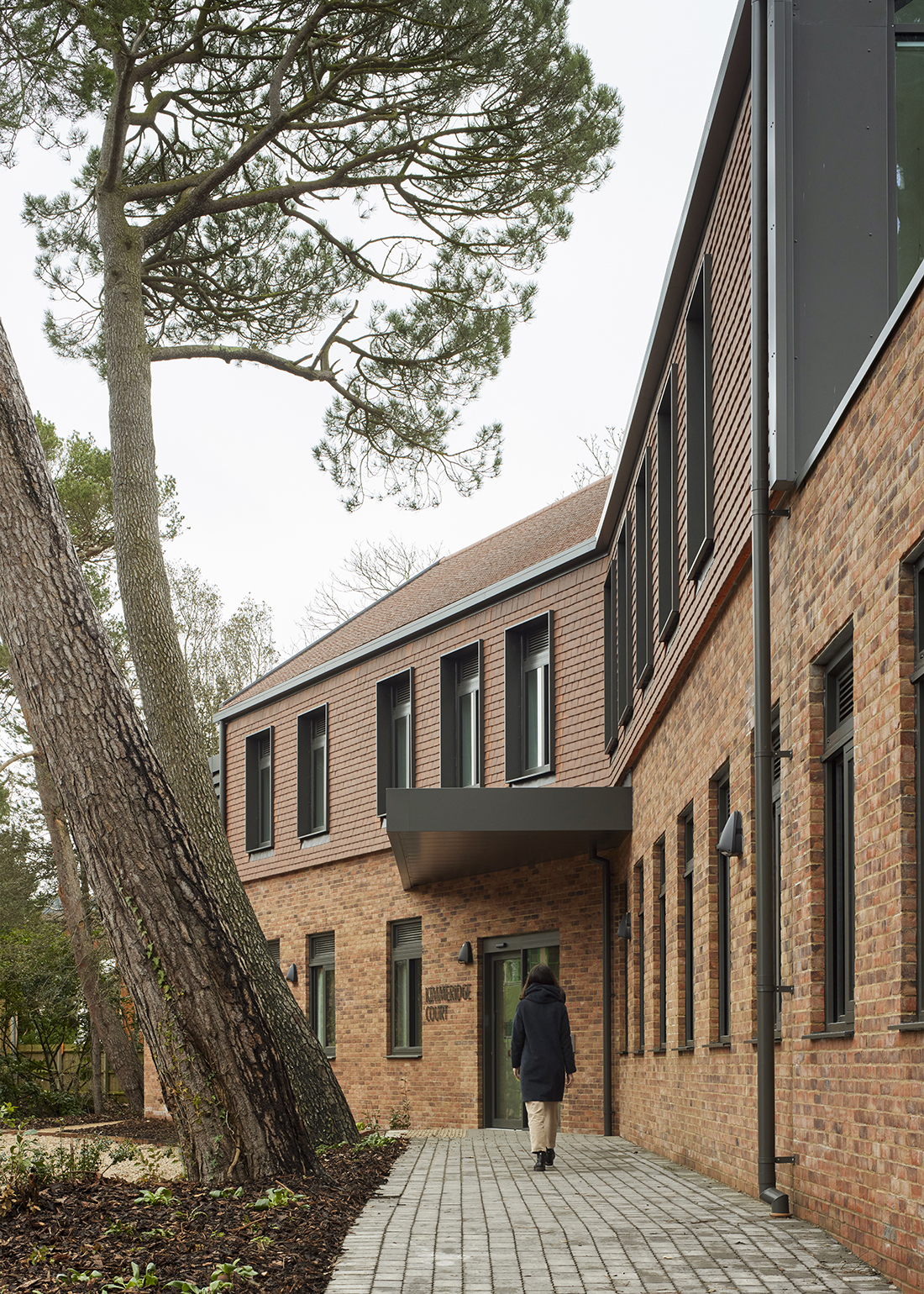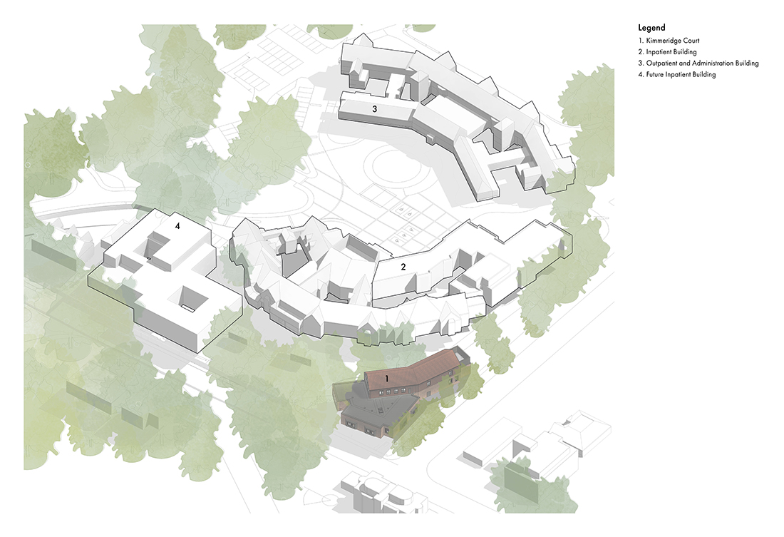 1. Kimmeridge Court - Richard Chivers 키머리지 코트(Kimmeridge Court)는 섭식 장애 치료를 위한 전용 보호 시설로, 숲으로 둘러싸인 자연환경 속에 자리해 고요하고 프라이빗한 치료 환경을 제공한다. 메디컬 아키텍처(Medical Architecture)가 설계한 이 시설은 세인트 앤스 병원(St Ann’s Hospital) 부지 내에 조성되었으며, 약 800만 파운드의 사업비가 투입된 전문 입원 치료 시설이다. 최근 증가하고 있는 섭식 장애 환자들이 보다 안전하고 안정적인 환경에서 치료받을 수 있도록 계획된 이 병원은, 주변 자연환경을 적극적으로 건축 설계에 반영한 점이 특징이다. 건축물은 기존 자연 생태계와의 조화를 고려해 설계되었으며, 이를 통해 환경적 지속가능성은 물론 환자들에게 자연 속에서 보호받고 있다는 심리적 안정감과 치유 효과를 제공한다. 특히 외부 마감에 적벽돌을 사용하고, 높은 천창과 키 큰 창을 계획해 자연 채광을 적극적으로 실내로 끌어들인 설계 방식을 공간 전반에 적용함으로써 치료 환경으로서의 완성도를 한층 높였다.