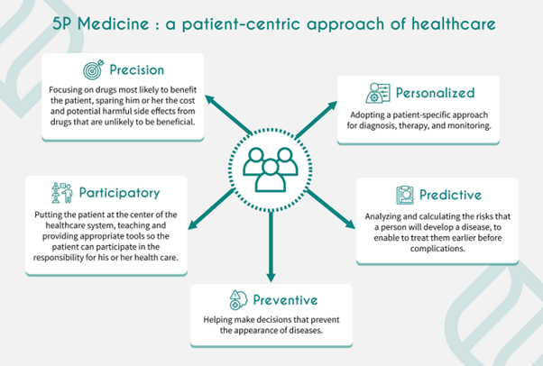 미래 의학의 핵심은 질병을 예측하고 예방하며, 개인의 특성에 맞춘 정밀하고 참여적인 치료를 제공하는 데 있습니다. 이는 '5P 의학' 또는 더 나아가 '5P1M' 개념으로 요약될 수 있는데, 이는 예방(Prevention), 예측(Prediction), 맞춤(Personalized), 참여(Participatory), 정밀(Precision)의 다섯 가지 축에 건강 증진(Promotion)과 건강 유지(Maintenance)의 개념을 더한 것입니다. 이러한 개념은 환자가 병에 걸리기 전에 미리 예방하고 건강을 유지하는 데 중점을 두며, 현대 의학의 발전과 더불어 인간의 기본적인 욕구인 건강하게 오래 사는 것을 목표로 합니다. 소아과 영역의 예방접종이나 암 예방 분야에서 일찍이 도입되었던 이러한 예방 의학의 개념은 이제 성인병 예방을 위한 생활 습관 교정이나 비만 치료약 개발 등으로 확대되고 있습니다.
