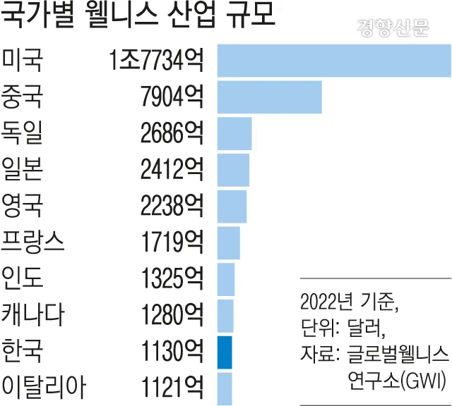 국내 웰니스 산업 규모는 2022년 약 1,130억 달러(약 150조 8,500억 원)로 세계 9위에 달하며, 운동/헬스케어, 전통˙보완의학, 영양/식습관, 뷰티케어 분야가 전체 웰니스 산업의 약 72%를 차지하고 있습니다. 서비스업보다는 제품화가 용이한 제조업 중심으로 구성된 것이 특징이며, 특히 전통·보완의학과 운동/헬스케어가 상대적으로 유망 산업으로 보입니다