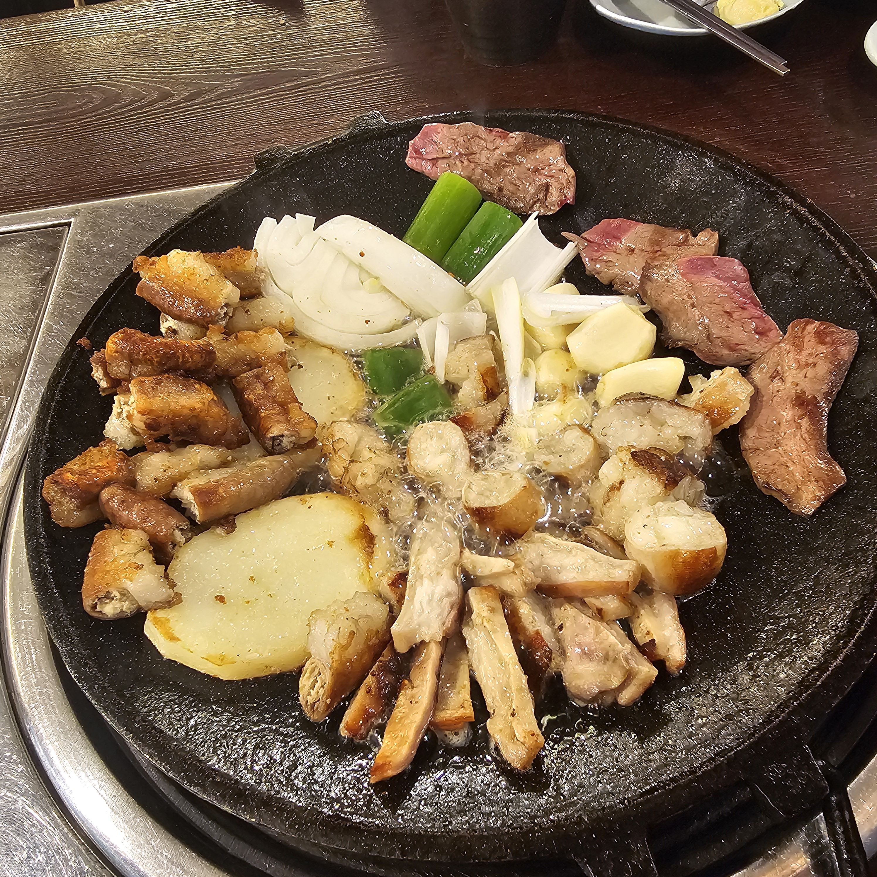 단일 부위가 주는 단조로움을 넘어, 우정양곱창의 ‘모둠 한판’은 완벽하게 설계된 맛의 캔버스를 제공한다. 각각의 부위를 내 맘대로 채색해 나가면, 모두에게 순간의 명작이 탄생한다. 쫄깃한 염통으로 식감을 돋우고, 고소한 곱창으로 풍미의 정점을 찍은 뒤, 입안에서 녹아내리는 대창과 막창의 식감으로 이어지는 흐름은 마치 넓고 높은 전시장에서 맛으로 그려낸 하나의 작품을 보는 듯하다. 부위마다 최적화된 그릴링 기술이 더해져, 한 판의 불판 위에서 펼쳐지는 다채로운 미식의 앙상블은 방문객에게 비교 불가능한 만족감을 선사한다.
