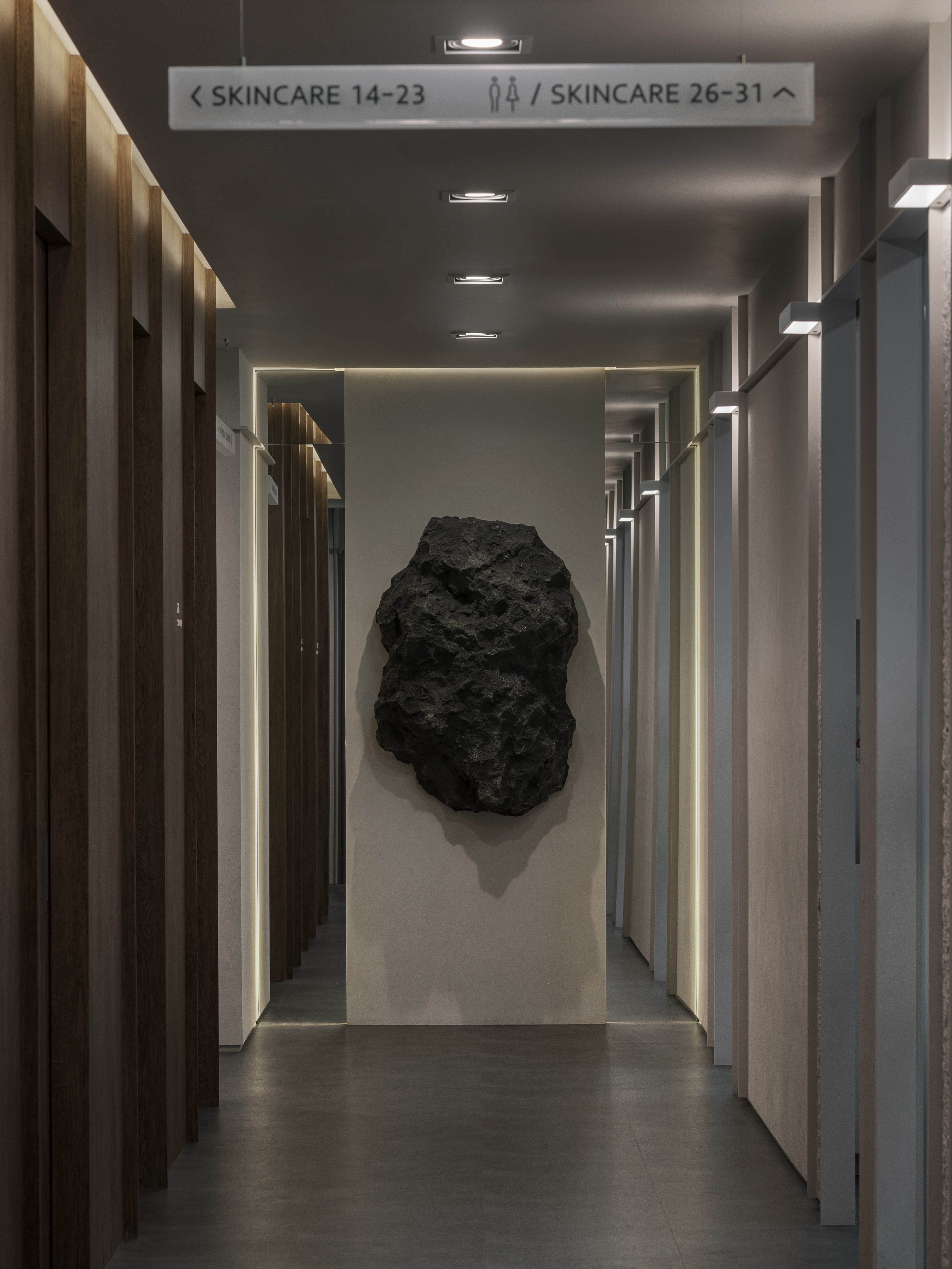 곡선과 직선이 자연스러운 대화를 이루고, 매스와 면의 비례는 과하지 않게 공간의 성격을 정리하며, 여백은 한옥의 ‘쉼’과 같은 역할을 수행한다. 그 결과, 공간은 시술을 위한 장소를 넘어 방문객이 스스로의 내면을 정돈하고 차분함을 회복하는 조용한 미감의 경험 공간으로 완성된다.