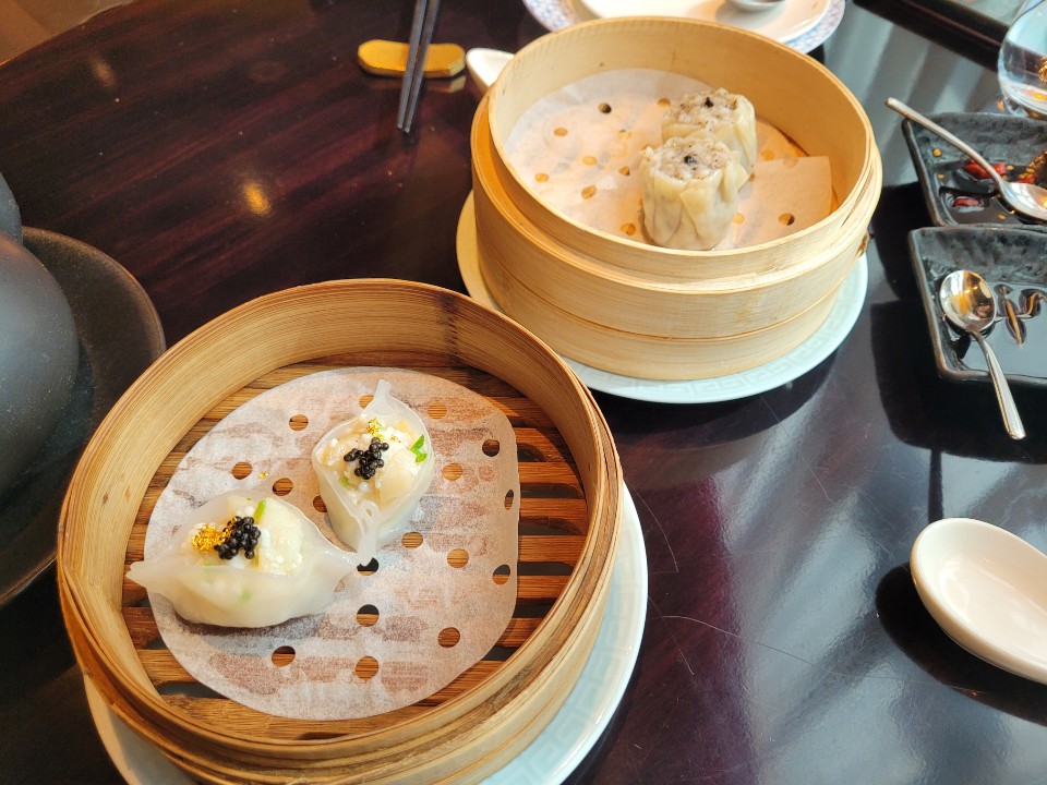 잘근잘근한 가루파와 관자를 품은 ‘캐비아를 곁들인 해물 딤섬’, 반숙 메추리알의 눅진한 노른자가 터지며 입안에서 트러플 향과 함께 고소한 맛이 번지는 ‘메추리알 트러플 샤오마이’, 겉바속촉한 북경오리 춘권, 쌀가루 전병의 부드러우면서 차진 식감 사이로 버무린 양념 돼지고기 맛이 우러나는 ‘차슈 바비큐 창펀腸紛’등의 창의적인 맛에 살짝 감동을 느낀다.